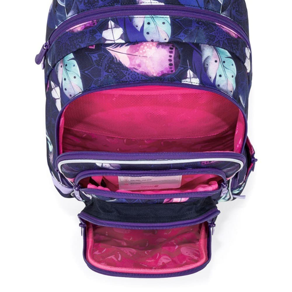 A LYNN modell a Topgal hátizsákok közül a legnagyobbak közé tartozik. A lila színű, gyönyörű mintával díszített, kétrekeszes hátizsákot minden 125 cm-nél magasabb iskolás lány viselheti.