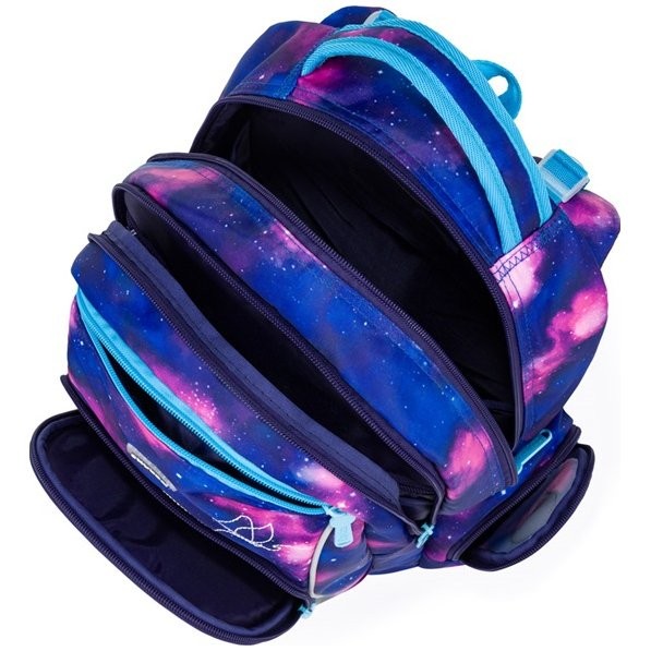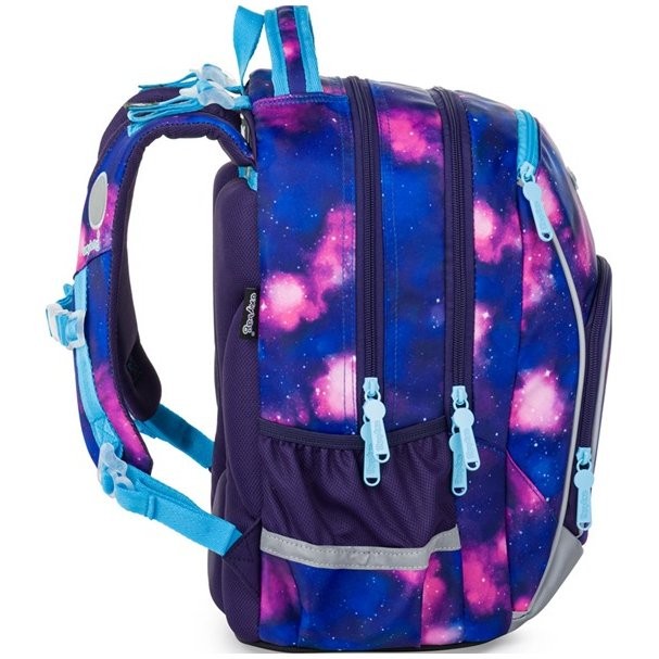 Az OXY GO iskolahátizsák modern dizájnjával és átgondolt funkcionalitásával nyűgöz le. Anatómiailag formázott, légáteresztő hátrésszel és állítható vállpántokkal rendelkezik a kényelmes viselet érdekében. A hozzáadott akasztók lehetővé teszik hosszú pántok rögzítését. A belső zsebek rengeteg helyet kínálnak tankönyveknek, füzeteknek és egyéb szükséges dolgoknak, a masszív, vízálló alj pedig védi a tartalmat a szennyeződésektől és a szivárgástól. Az oldalsó zsebek, az egyik cipzáras, a másik nyitott, például cumisüvegnek szolgálnak. A fényvisszaverő elemek a biztonságról gondoskodnak. A hátizsák ideális 1-3. osztályos és 125 cm magas gyermekek számára. A hátlap hossza 39 cm, térfogata 22 l, súlya 930 g, teherbírása 8 kg. Táska: Praktikus edzőtermi vagy szabadidős tevékenységekhez, húzózsinórral záródik. Tolltartó: Egyszintes, két fedéllel, íróeszköz-hurkokkal és átlátszó fóliával az órarendnek.