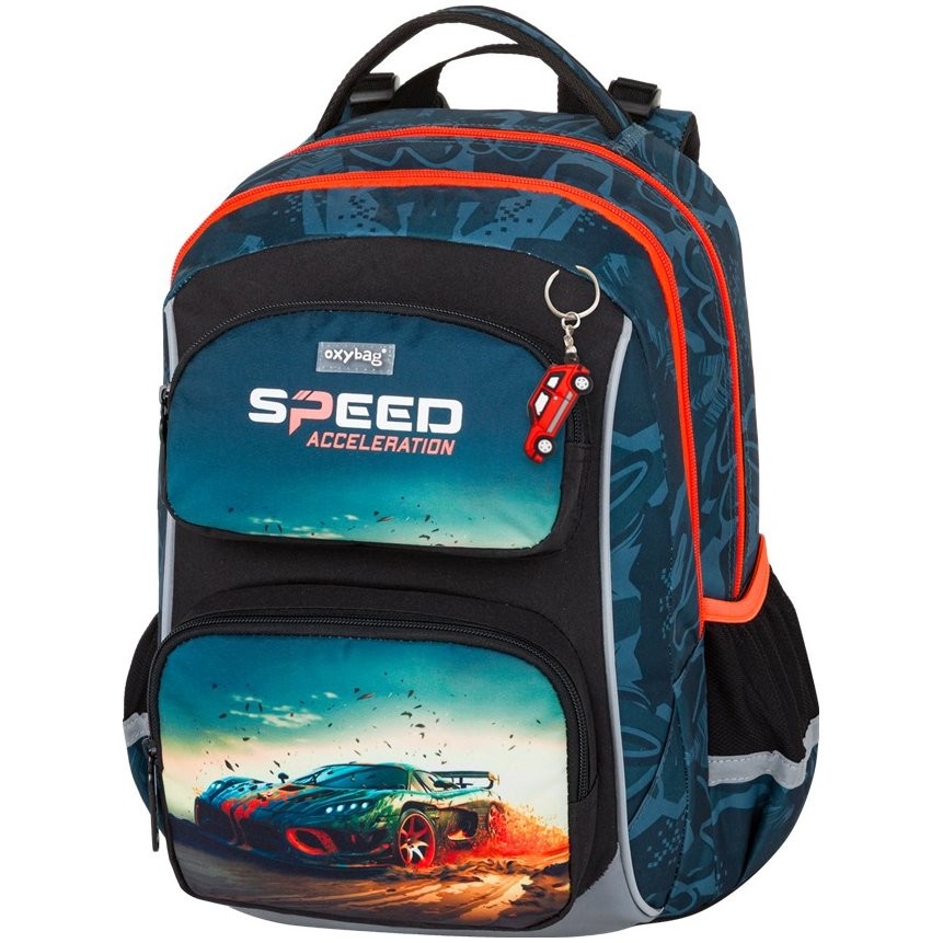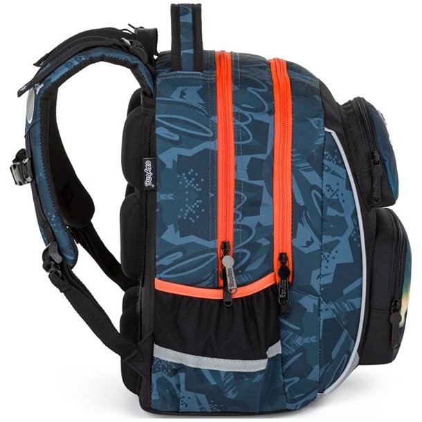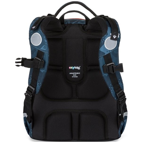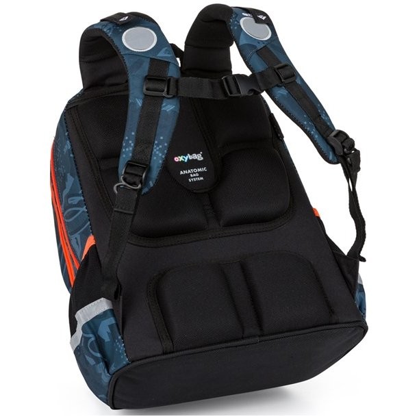 Nagyszerű, 3 darabos OXY JUMPER hátizsák, tolltartó és edzőtáska szett. Az OXY JUMPER iskolai hátizsák ideális választás azoknak az iskolás gyerekeknek, akiknek kényelmes és strapabíró hátizsákra van szükségük. Anatómiailag formázott hátlappal és rugós vállpántrendszerrel rendelkezik, amelynek köszönhetően a hátizsák kényelmes viseletet biztosít még nehéz teher cipelése esetén is. Két tágas rekesz elegendő helyet kínál tankönyvek, füzetek és egyéb iskolai eszközök számára. Az oldalakon nyitott hálós zsebeket találsz palacknak és egyéb apró tárgyaknak. Természetesen van egy megerősített vízálló alj, számos fényvisszaverő elem és egy praktikus elülső zseb egy uzsonnásdoboznak. A hátizsák állítható vállpántokkal, feszítőpántokkal és mellkaspánttal rendelkezik az egyenletes súlyelosztás érdekében. A súlya 990 g, a térfogata 23 l, a teherbírása pedig 8 kg. A szett tartalmaz egy egyszintes tolltartót és egy edzőtáskát is, ugyanilyen dizájnnal.