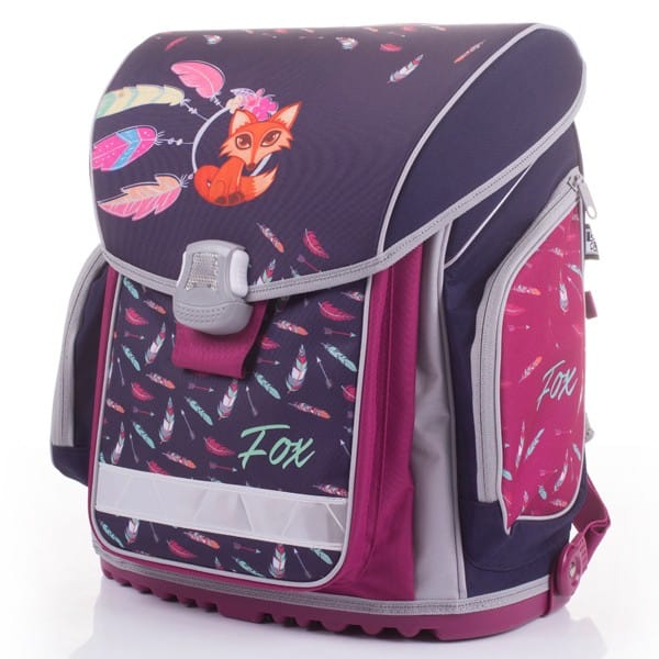 Iskolai aktatáska az Elsősöknek róka motívummal. A táskának állítható magasságú hordozórendszere van, a gyerekkel növekszik. A táskának az anatómiailag formázott, párnázott légáteresztő anyagból, hátfala és vállpántok vannak. Vállpántok a kiegészítõ pántokkal a felső részben vannak ellátva. A hátizsák kialakítása csökkenti a vállak és gerinc terhelését. Mellkaspánttal az elegendő támaszt és az optimális súlyelosztást biztosítja. A fő rekesz műanyag zárral van ellátva. Tágas belső tér könyvtartó rekesszel van ellátva, ügyesen kigondolt mozgós rekeszeiben könnyebben megy majd a bepakolás. Minden méretű füzet és könyv elfér benne. A másik belső válaszfal alkalmas az uzsonna doboz, ceruza és más iskolai kellékek tárolására. Az oldalos zsebek az 0,5 l kulacs elhelyezésére vannak tervezve és az egésszéges kulacs is befér. Erős, stabil tartólábak a táska alján, melyek megakadályozzák a táska aljánok sérülését és a táska felborulását.