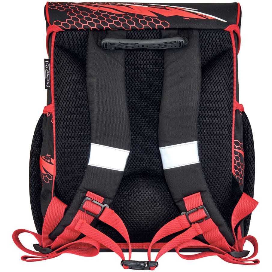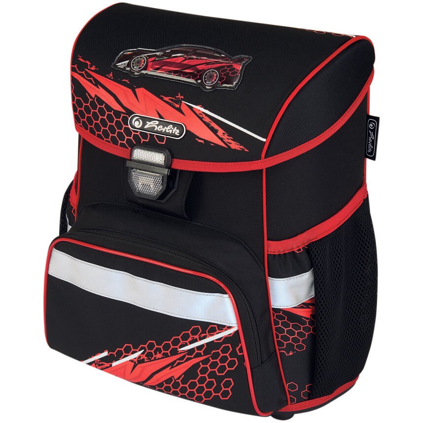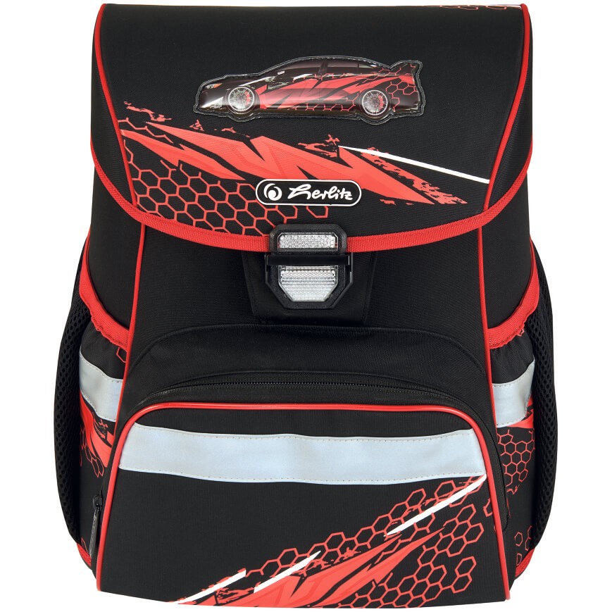 A Herlitz Loop iskolatáska az 1.- 3. osztályos általános iskolás tanulók számára alkalmas. Az egykamrás hátizsákot autós motívum díszíti, a kisiskolások hátára ideális. A táska nagy előnye, hogy ergonómikusan párnázott légáteresztő háttal rendelkezik és könnyű. Ez biztosítja viselés közben a magas komfortérzetet. A táska belső része textil válaszfallal van elválasztva a füzetek és a könyvek stabil elhelyezése érdekében. Az oldalsó zseb részben hálós anyagból készült, ezért elfér benne egy 0,5l- es italos üveg is. Az elülső cipzáras zseb ideális a tízórais doboznak. A gyermek biztonságának növelése érdekében ködben, vagy kedvezőtlen időjárási körülmények esetén az iskolatáska minden oldala fényvisszaverő elemekkel van ellátva.