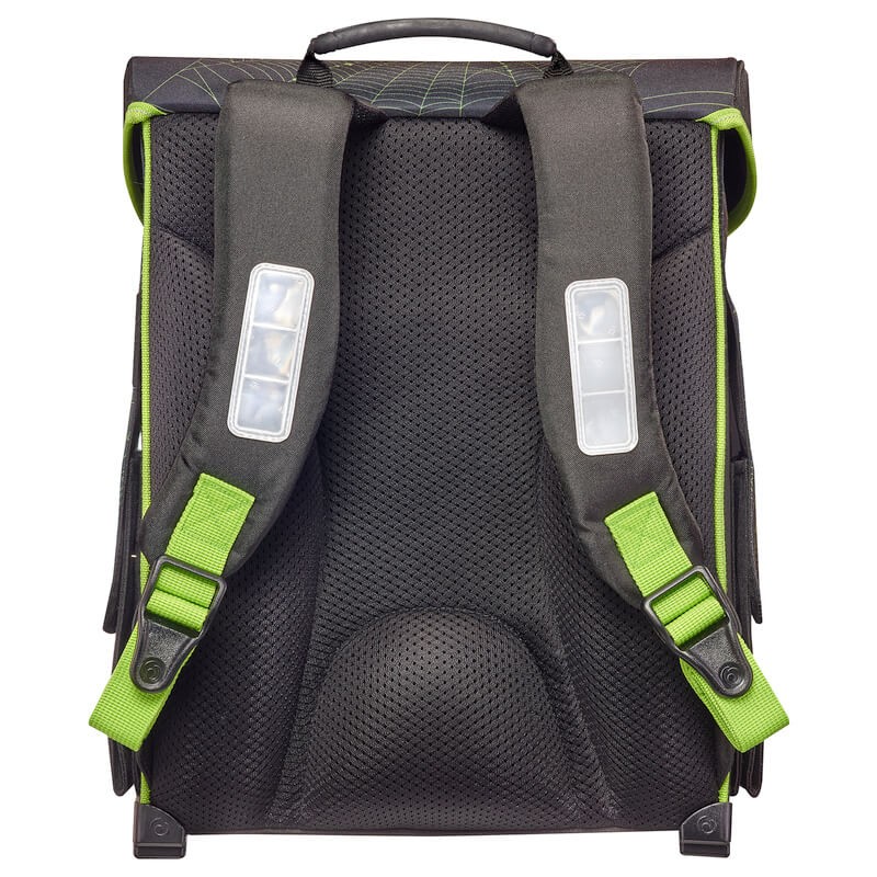 A fő kamra elvan osztva egy mozgatható választékkal,mely bebiztosítja a legnehezebb tankönyvek legközelebbi háthoz lévő elhelyezését és így a táska megfelelő súlyeloszlását. Az optimális láthatóságot a sötétben bebiztosítja a magas minőségű fényvisszaverő anyag "3M Scotchlite".