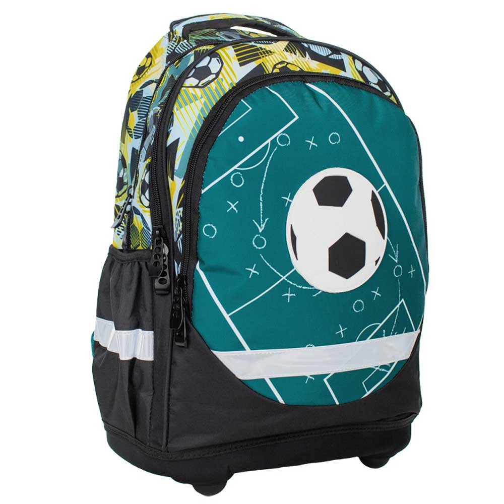 A táskát kényelmesen lehet kézben tartani a műanyag erősítésű fogantyúnak köszönhetően, a két oldalsó zseb palack vagy más apró tárgy számára lesz megfelelő. Az iskolatáska minden oldalán biztonsági elemek találhatóak. A táska alja erős és tartós anyagból készült.