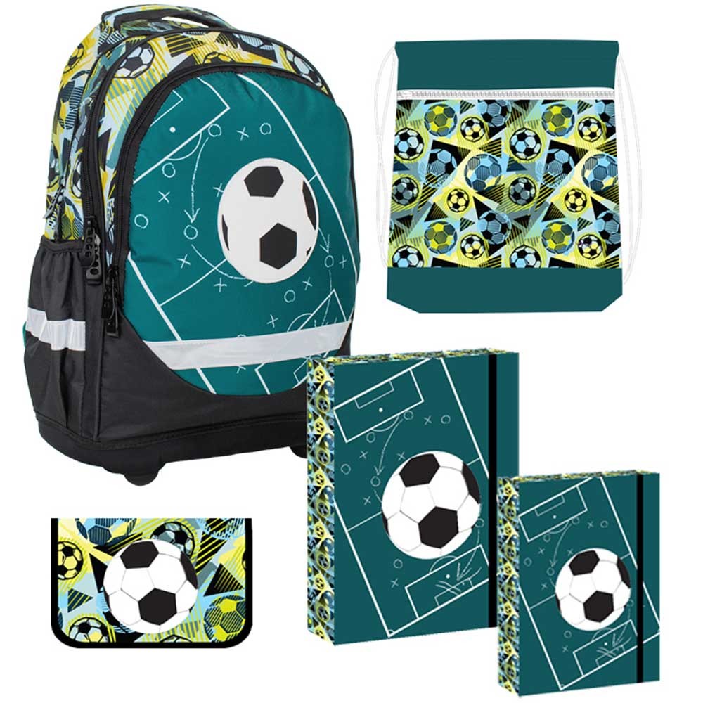 A készlet egy táskából, tolltartóból, tornazsákból és egy azonos motívumú füzettartóból A4-es és A5--ös formátumban áll.
