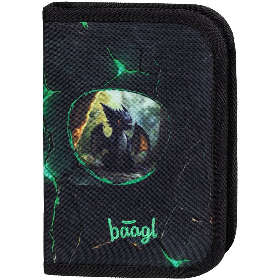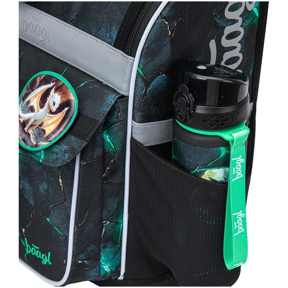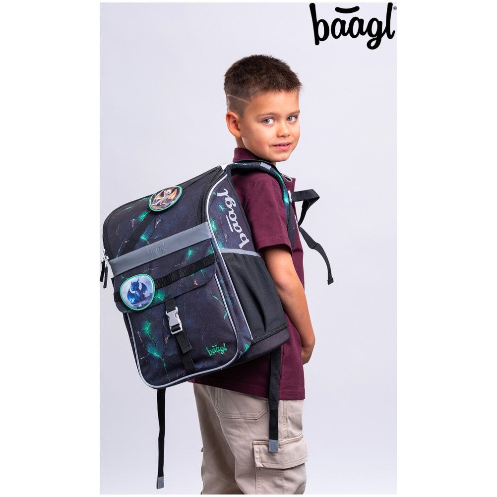 Iskolatáska Baagl Zippy öt részes szettben, sárkányos mintával: