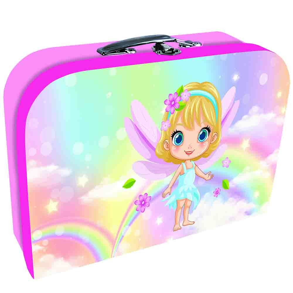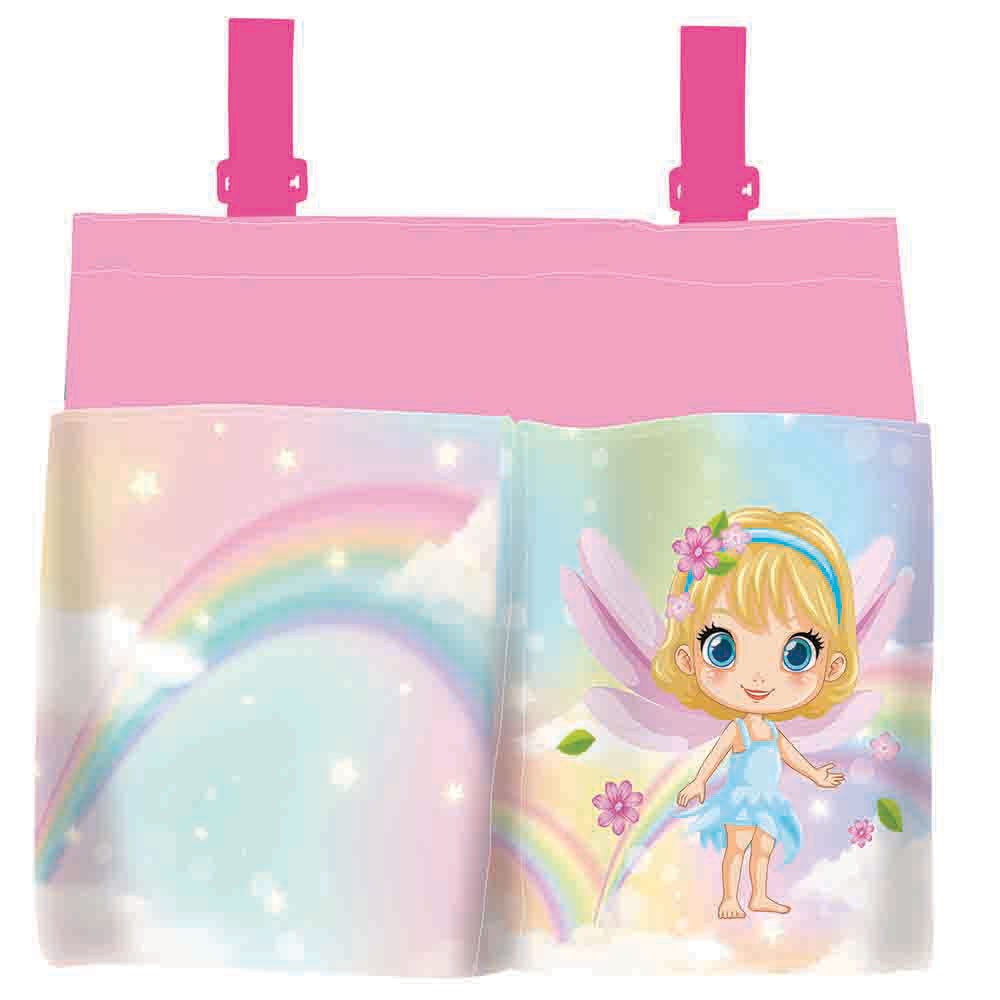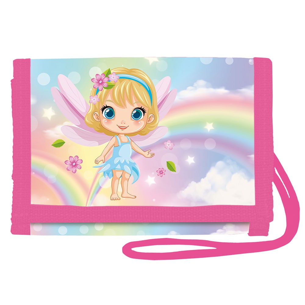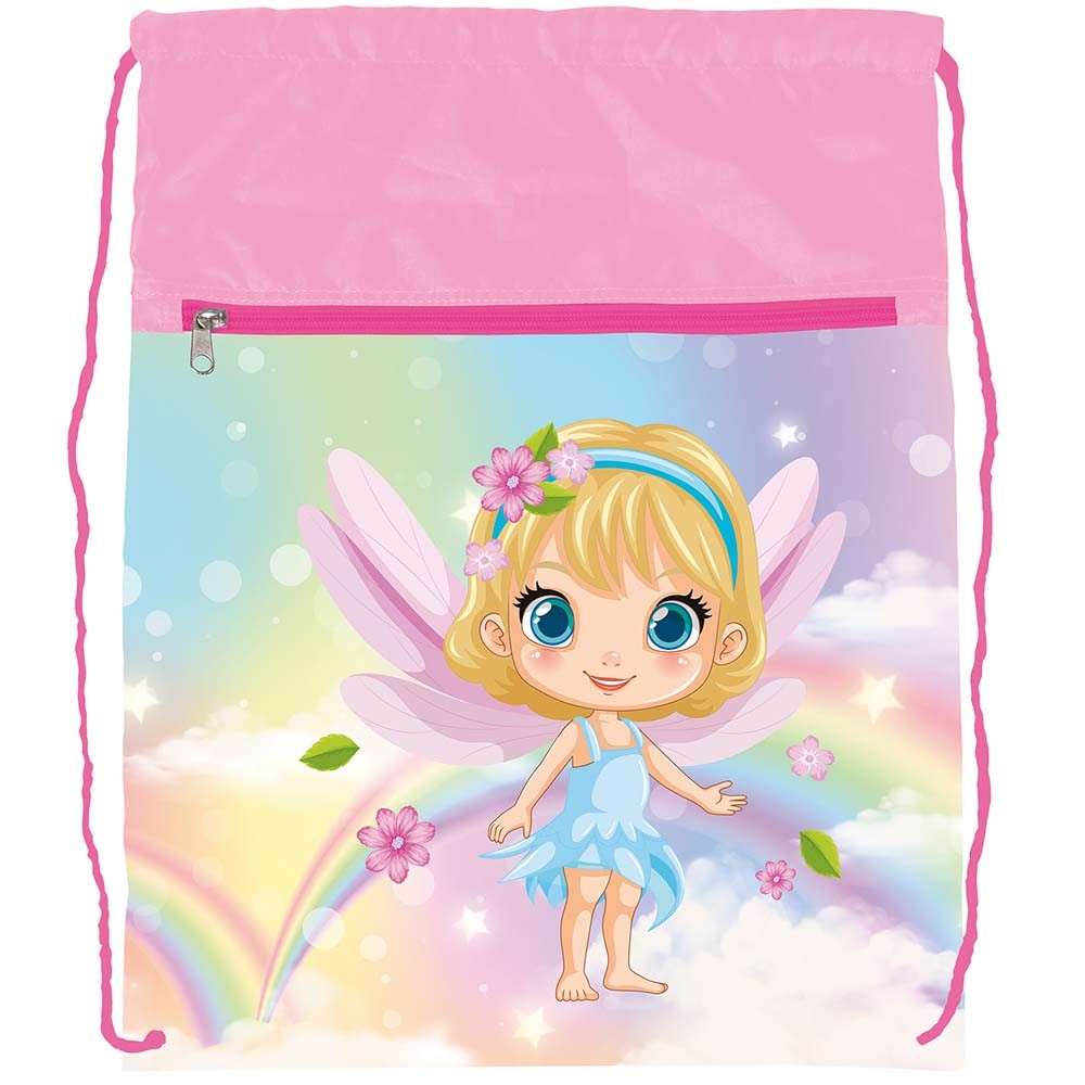 Iskolatáska szett lányoknak csinos tündér motívummal. A készlet tartalma: iskolatáska, tolltartó, tornazsák, A4-es és A5-ös füzettartó, betűtartó, számtálca, művészetoktatási kötény, bőrönd, pénztárca és zsebes tároló.