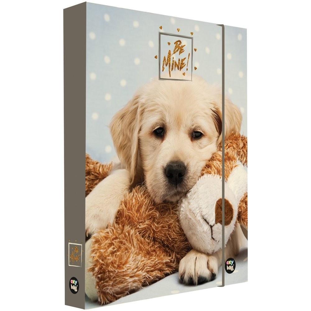 A4-es füzettartó box a plüssök és a háziállatok kedvelőinek. Ellenálló anyag - lamino, véd a sérülésektől. Gumis zárás. A hát szélessége 4 cm. Méretek: b> 32 x 24,5 x 4 cm