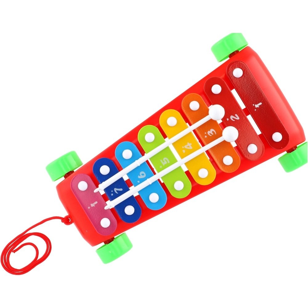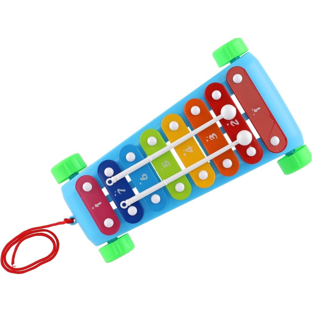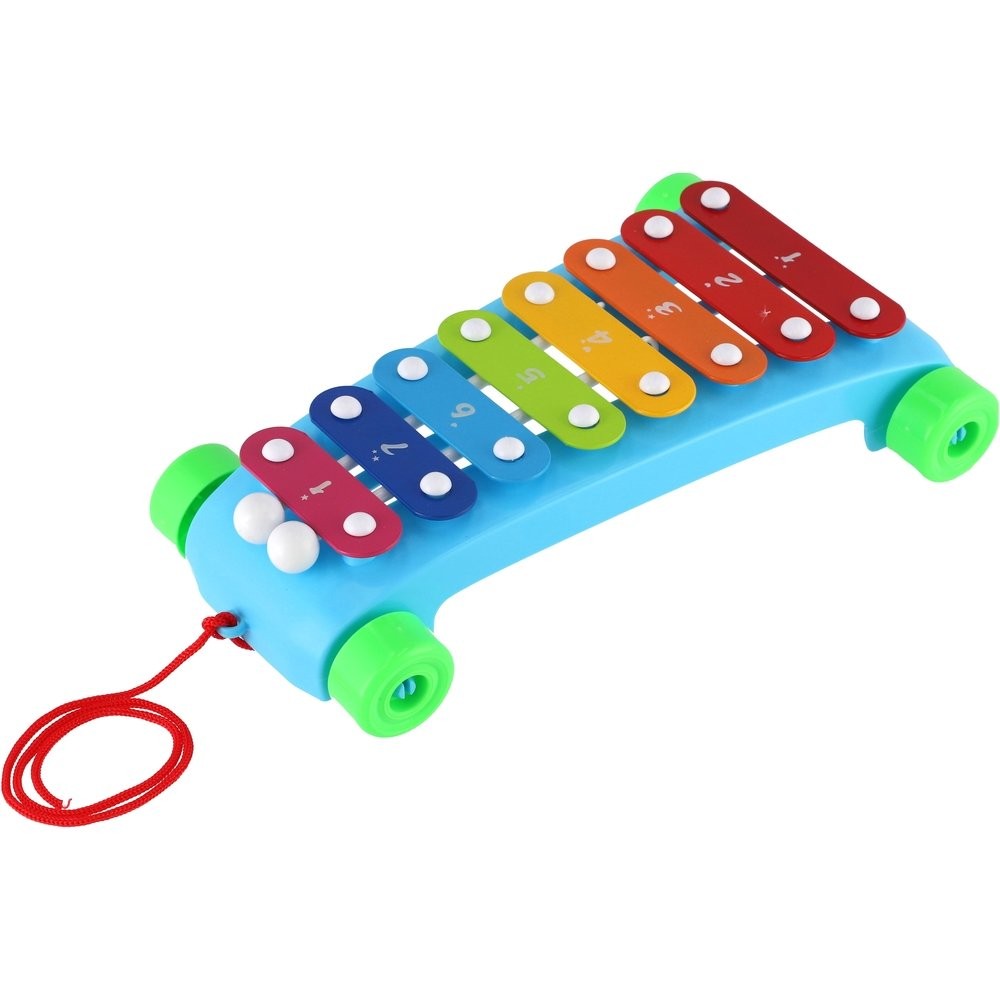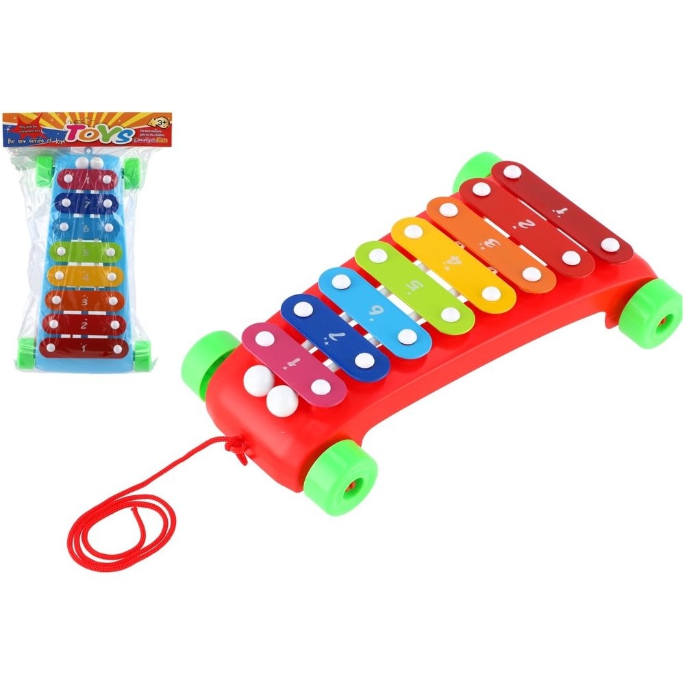 Egy szórakoztató kihúzható xilofon 8 színes gombbal és 2 dobverővel zenei kreativitás megteremtésére ösztönzi a gyerekeket. A játék műanyagból készült, fémlapokkal. A xilofon kerekekkel és zsinórral rendelkezik a húzáshoz, így a gyerekek bárhová magukkal vihetik! Xilofon mérete: 24 cm Gyermekeknek 3 éves kortól alkalmas