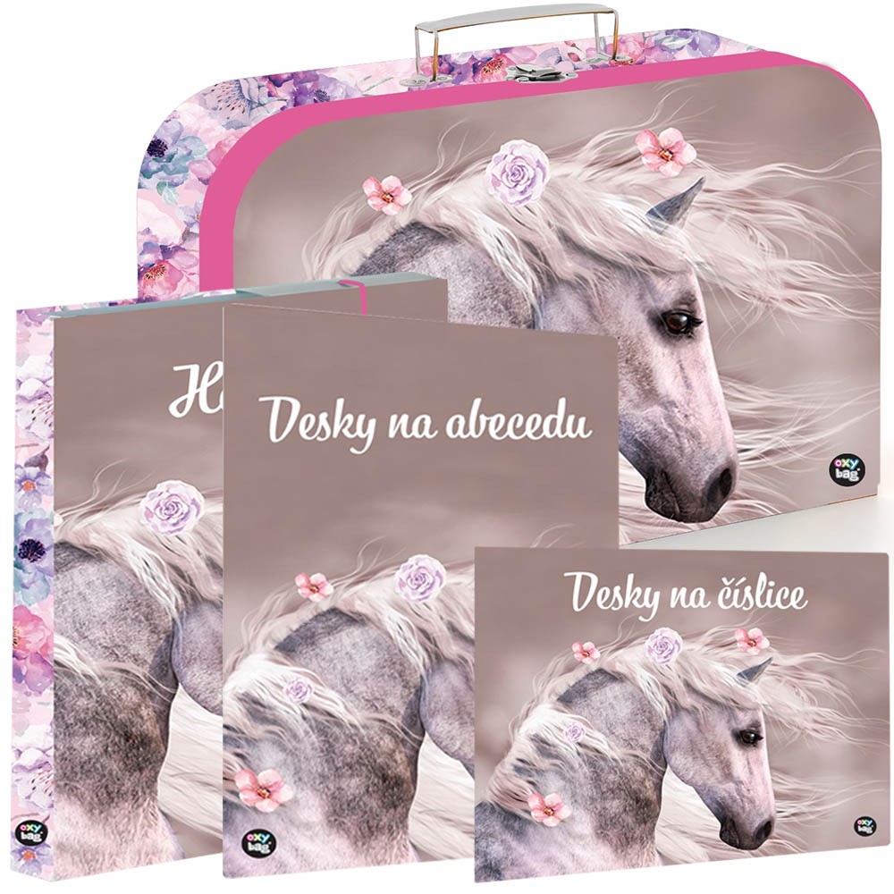 A 4 részes, Romantikus ló motívumú iskolaszerek készlet tartalma: