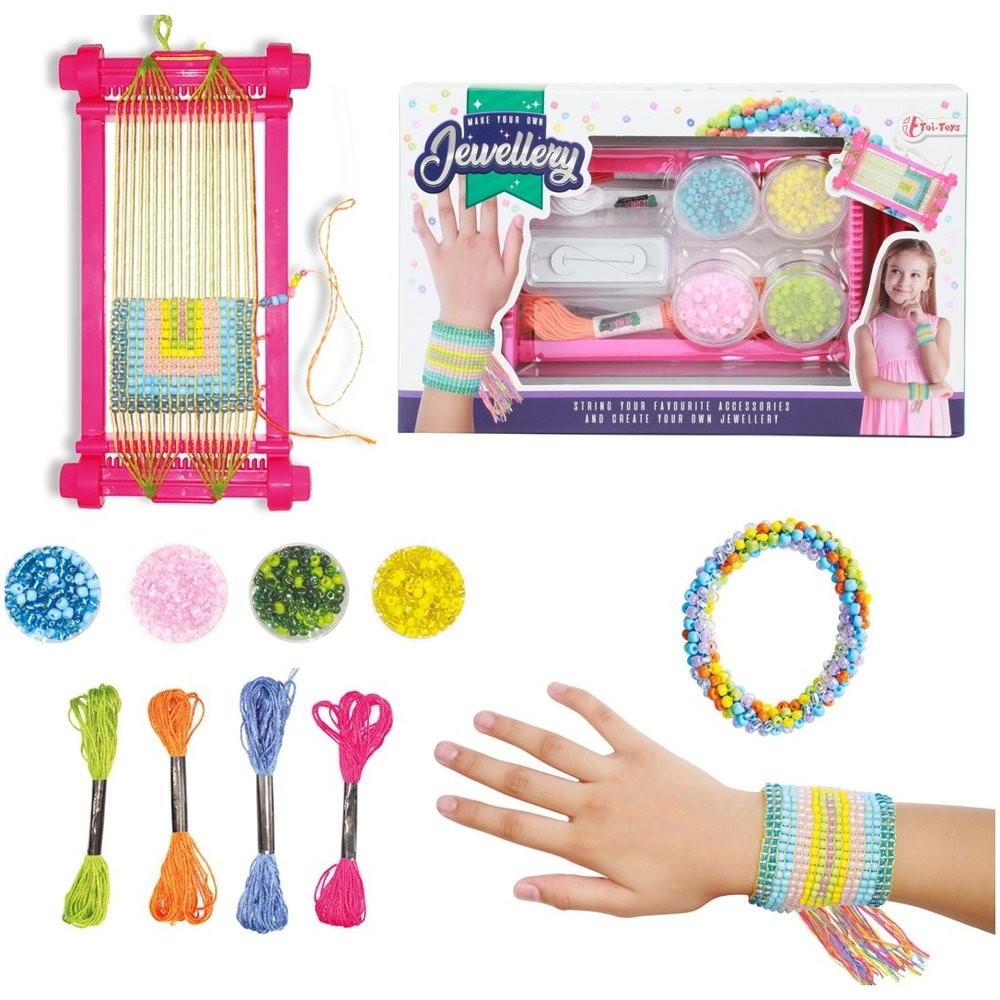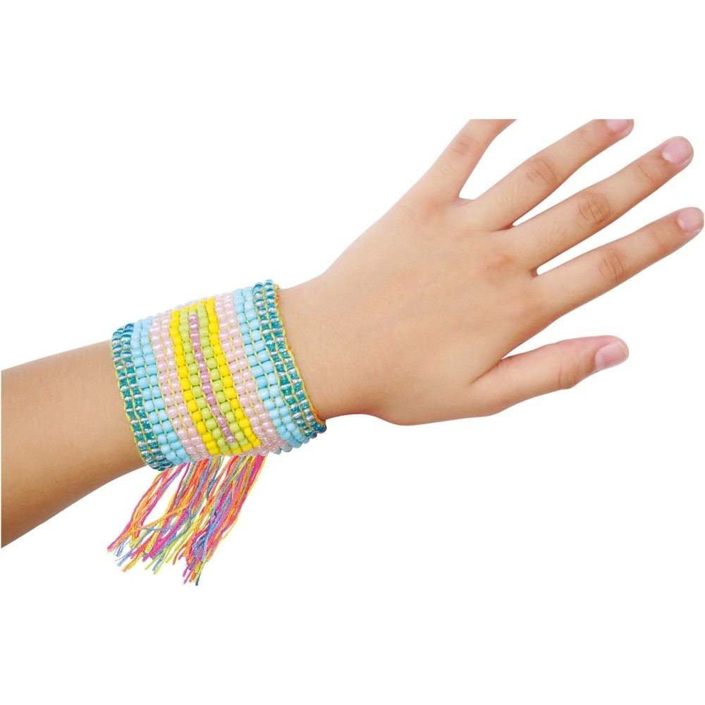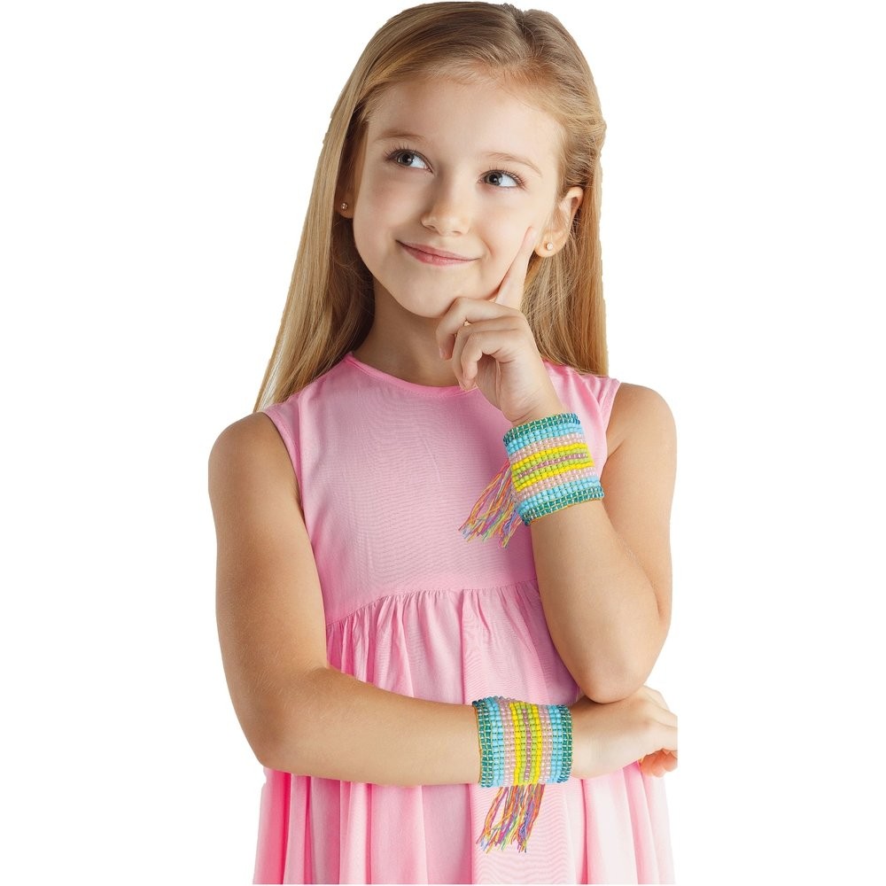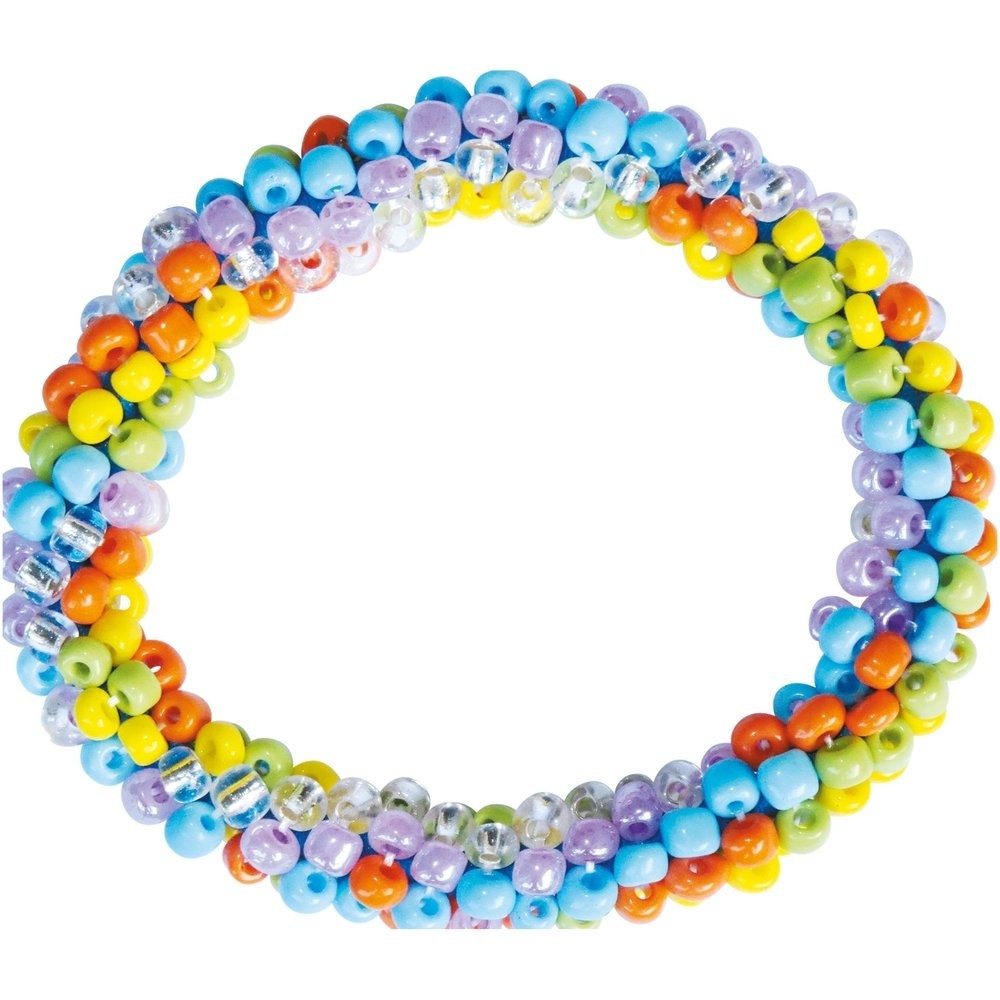 Köss saját karkötőt az öltözékedhez. Remek szórakozás a szabadidő eltöltésére. Készíts egy igazán eredeti ékszert, ami senki másnak nem lesz! A készlet 4 színes pamutot, 4 színű gyöngyöt és egy kötőtűt tartalmaz. A termék méretei 25 x 15 x 3 cm. Alkalmas gyermekek számára 8 éves kortól.