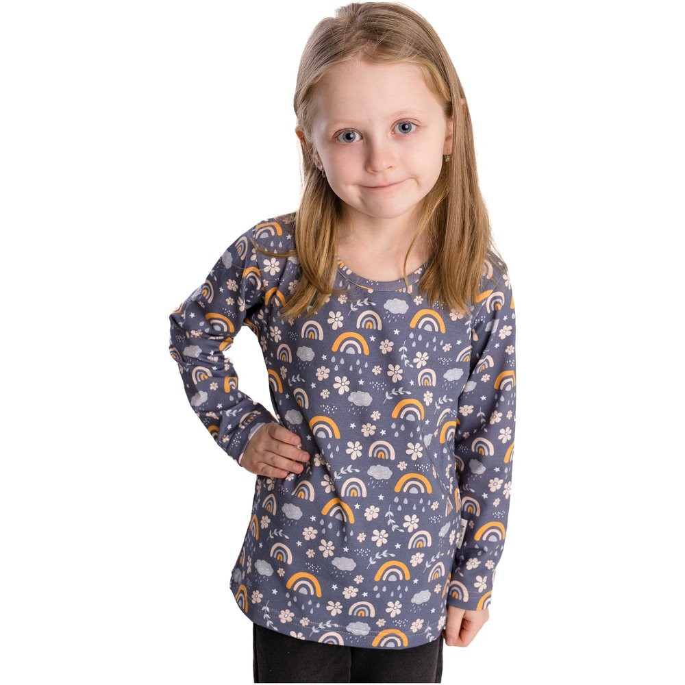 Lány pamut póló minőségi pamutból készült, nagyon kedvelt szabással és élénk színű mintákkal. A nyakrészt vékony, rugalmas szegéllyel látták el, megőrzi az alakját és könnyen felvehető.