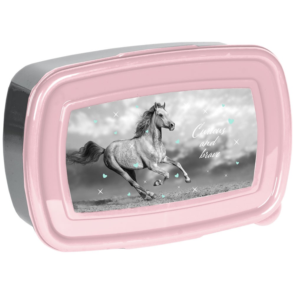 Gyermeke uzsonnája egész nap friss maradhat ebben a klassz,;zárható, műanyag uzsonnás dobozban, amelyet lovas grafika díszítti. Az uzsonnás doboz felpattintható fedéllel rendelkezik, és ideális iskolába, óvodába vagy utazáshoz.