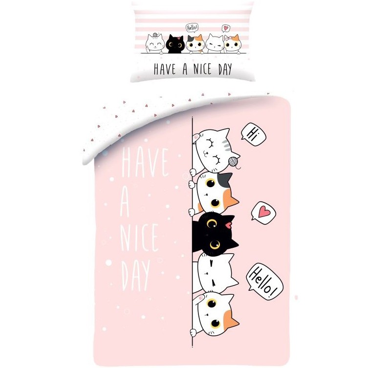 baba ágynemű cicák motívumával. A paplan motívuma minden oldalon más. A lepedők cipzárasak.