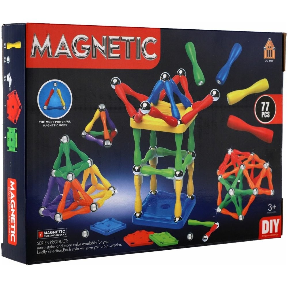 Fedezd fel a képzelet, az építés és a mágneses szórakozás világát. Ez a 77 darabos mágneses építőkészlet színes műanyag rudakat kombinál mágnesekkel és fémgolyókkal, amelyek lehetővé teszik a könnyű összekapcsolást különféle formák és térbeli modellek létrehozásához. Csomag méretei 25 x 18 x 4 cm 3 éves kortól alkalmas gyermekek számára