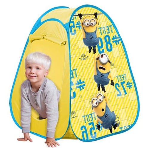 Kültéri és beltéri használatra alkalmas sátor Minyonok mintával. Könnyű felállítani és összepakolni is. Könnyen tisztítható anyagból készült.