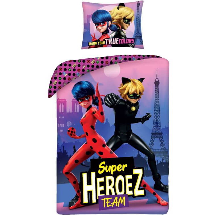 Miraculous Ladybug, Katicabogár és Fekete Macska kalandjai felnőtt méretű ágyneműhuzat garnitúra Két részes, pamut ágynemű huzat szett, igazi Katicabogár és Fekete Macska kalandjai rajongóknak! Az ágynemű nagyon kellemes tapintású, a sokadik mosás után is megőrzi a színét. Mindkét oldala más mintával. A csomag tartalma: 1 darab párnahuzat: 70x90 cm, 1 darab takaróhuzat: 140x200 cm Anyaga: 100% pamut Gyártó: Halantex