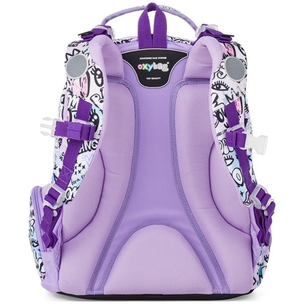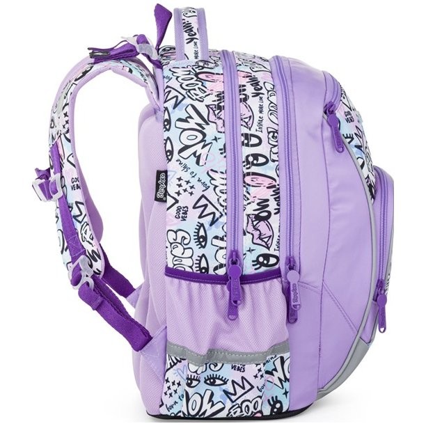 Az OXY GO Funny Girl iskolatáska elsősöknek modern dizájnjával és átgondolt funkcionalitásával lenyűgöző. Az iskolatáska ideális 125 cm-es magasságú, 1-3. osztályos gyerekek számára. Anatómiailag formázott, légáteresztő hátrésszel és állítható vállpántokkal rendelkezik a kényelmes viselet érdekében. Az iskolatáska kampókkal van ellátva, amelyek lehetővé teszik a hosszú pántok rögzítését. A belső zsebek rengeteg helyet kínálnak tankönyveknek, füzeteknek és egyéb szükséges dolgoknak, a masszív, vízálló alj védi a tartalmat a szennyeződésektől és a kiömlött folyadékoktól. Az oldalsó zsebek, az egyik cipzáras, a másik nyitott, például cumisüvegnek szolgálnak. Fényvisszaverő elemek garantálják a biztonságot.