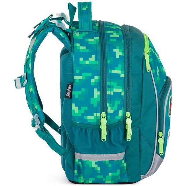 A praktikus és stílusos OXY GO Playworld iskolai hátizsák modern dizájnjával és átgondolt funkcionalitásával lenyűgöző. A hátizsák ideális 1. és 3. osztály közötti gyermekek számára, 125 cm magassággal. Anatómiailag formázott, légáteresztő hátrésszel és állítható vállpántokkal rendelkezik a kényelmes viselet érdekében. Az iskolai táska kiegészítő horgokkal rendelkezik, amelyek lehetővé teszik a hosszú pántok rögzítését. A belső zsebek rengeteg helyet kínálnak tankönyveknek, füzeteknek és egyéb szükséges dolgoknak, a masszív, vízálló alj védi a tartalmat a szennyeződésektől és a kiömlött folyadékoktól. Az oldalsó zsebek, az egyik cipzáras, a másik nyitott, például kulacsnak szolgálnak. Fényvisszaverő elemek garantálják a biztonságot.