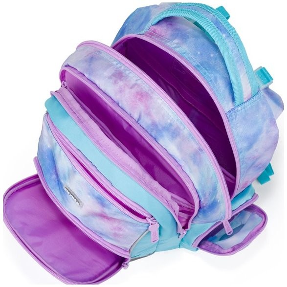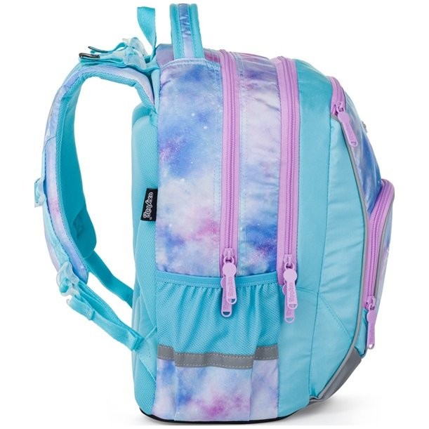 iskolatáska modern dizájnjával és átgondolt funkcionalitásával lenyűgöző. A hátizsák ideális 1. és 3. osztály közötti, 125 cm magas gyermekek számára. Anatómiailag formázott, légáteresztő hátrésszel és állítható vállpántokkal rendelkezik a kényelmes viselet érdekében. Az Iskolai táska akasztókkal van ellátva a hosszú pántok rögzítéséhez. A belső zsebek elegendő helyet kínálnak tankönyveknek, füzeteknek és egyéb szükséges tárgyaknak, a masszív, vízálló alj védi a tartalmat a szennyeződésektől és a kiömléstől. Az oldalsó zsebek, egy cipzáras és egy nyitott, például kulacsnak szolgálnak. Fényvisszaverő elemek biztosítják a biztonságot.