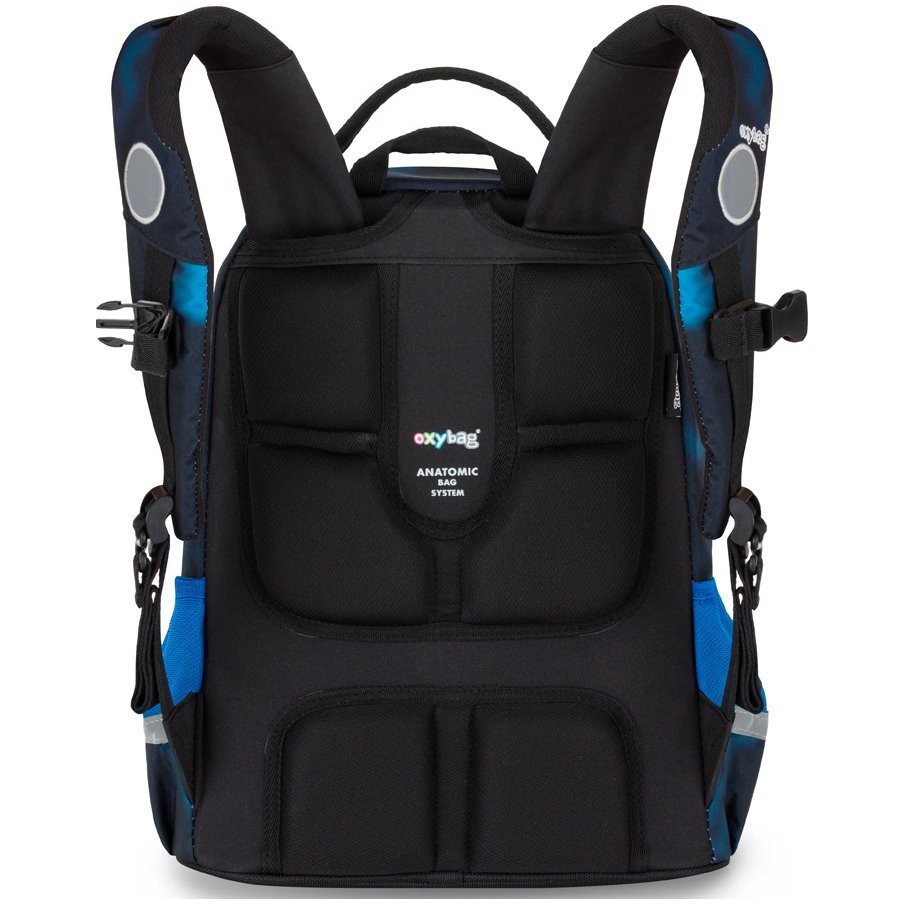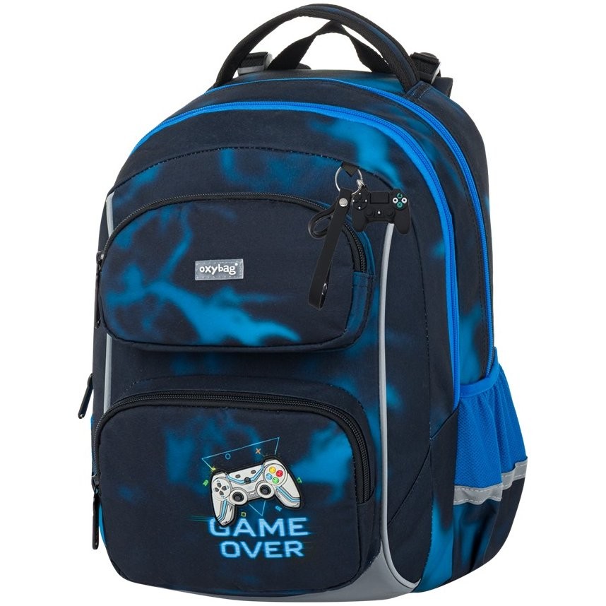 Az OXY JUMPER Gamer iskolai hátizsák ideális választás 1-3. osztályos kisiskolások számára, akiknek kényelmes és strapabíró hátizsákra van szükségük. Az Iskolatáska továbbfejlesztett anatómiailag formázott hátlappal és rugós vállpántrendszerrel rendelkezik, aminek köszönhetően a hátizsák kényelmes viseletet biztosít még nagy terhelés esetén is. Két tágas rekesz bőséges helyet kínál tankönyvek, füzetek és egyéb iskolai kellékek tárolásához. Az oldalakon nyitott hálós zsebek találhatók palackok és egyéb apróságok tárolásához. Természetesen vízálló aljjal, számos reflex elemmel és praktikus elülső zsebbel rendelkezik, amelybe egy tízestás doboz is befér. A hátizsák állítható vállpántokkal, rögzítő pántokkal és mellkas pánttal rendelkezik, amelyek egyenletesen osztják el a súlyt.