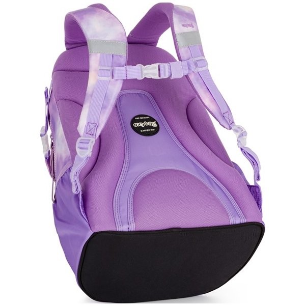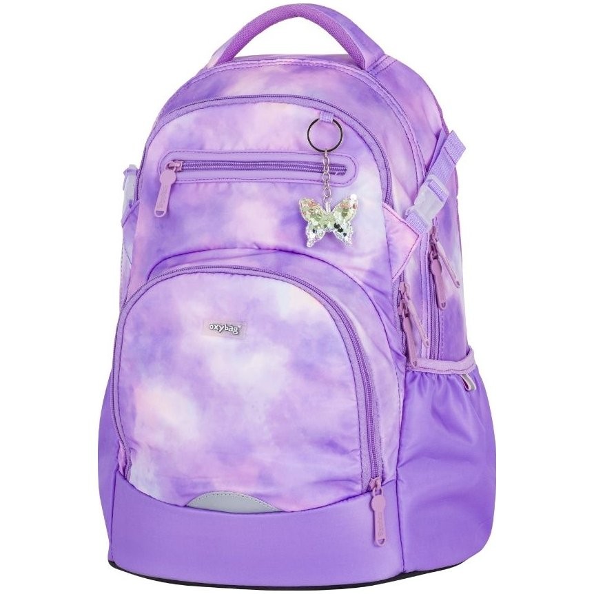 Az OXY Ombre sorozatú iskolai hátizsák ideális iskolások számára 3. osztálytól. Az anatómiailag formázott hátlap, a párnázott vállpántok és az állítható mellkaspánt biztosítja, hogy minden iskolás háta olyan puha legyen, mint a pamut. A masszív alj megakadályozza, hogy az önállóan is használható hátizsák felboruljon. A hátizsák két tágas zsebbel rendelkezik az összes szükséges iskolai felszereléshez. Az oldalsó, rugalmas szalaggal ellátott zsebekben elfér egy kulacs, amely könnyen hozzáférhető, így kiegészítve minden iskolás gyermek ivási rutinját. Az elülső zsebben könnyen elrejthető egy kisebb uzsonna. Számos fényvisszaverő elem található. A hátizsák 136 cm magas gyermekek számára alkalmas. A hátlap hossza 43 cm, térfogata 28 l, a hátizsák súlya 960 g, teherbírása pedig 8 kg.