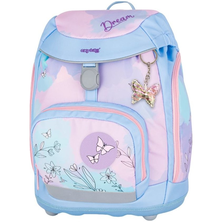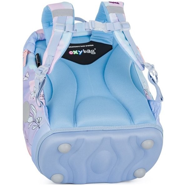 Az OXY Sherpy sorozat iskolatáska lányoknak ideális választás 1–3. osztályos gyermekek számára. Az iskolatáska 121 cm-nél magasabb gyermekek számára ajánlott. Az iskolatáska anatómiailag kialakított háttámlával, párnázott vállpántokkal és állítható mellkashevederrel rendelkezik, ami kényelmet és helyes testtartást biztosít. A merev aljzat műanyag lábakkal van ellátva, amelyek megakadályozzák a hátizsák felborulását és lehetővé teszik, hogy a hátizsák önállóan álljon. A belső elválasztó segít a rend fenntartásában, míg a főrekesz húzózsinórral és mágneses zárral ellátott zárása praktikus és könnyen kezelhető egy kézzel. Az oldalsó cipzáras zsebek ideálisak italos palackok tárolására, az elülső zseb pedig további tárolóhelyet biztosít. A gyermek biztonságát reflex elemek is szolgálják. A cserélhető tépőzáras címkéknek köszönhetően minden iskolás a saját ízlésének megfelelően alakíthatja a hátizsák dizájnját.