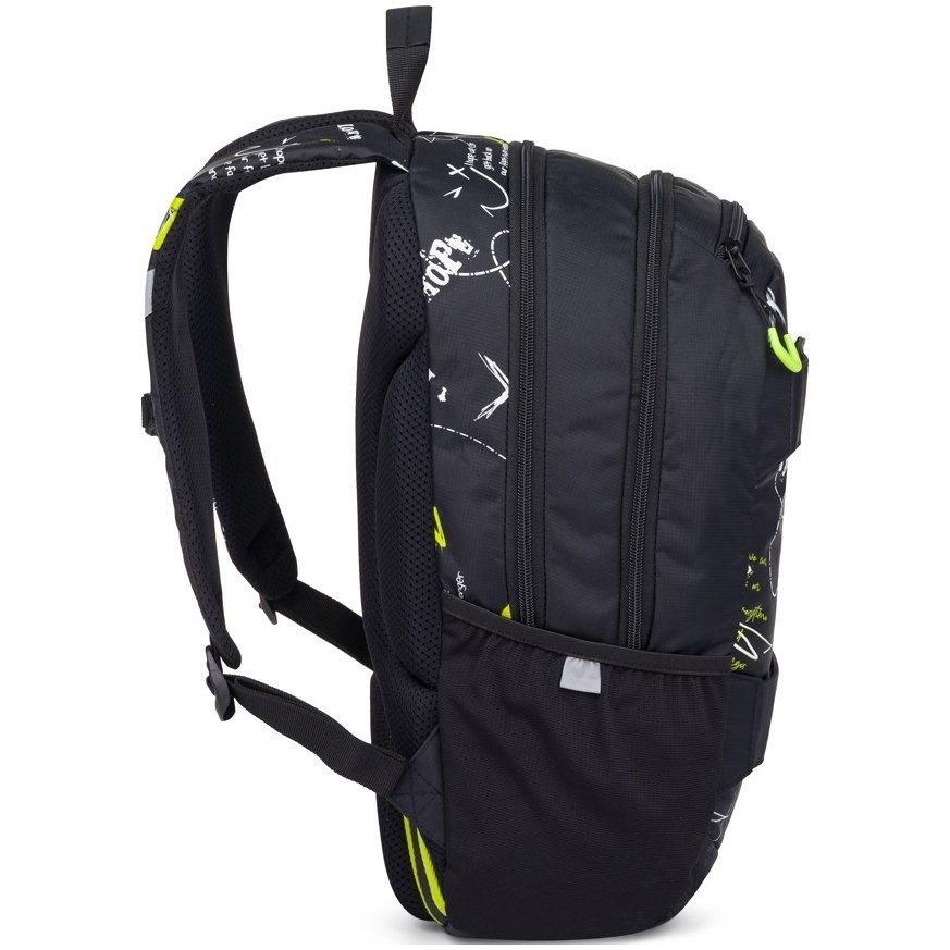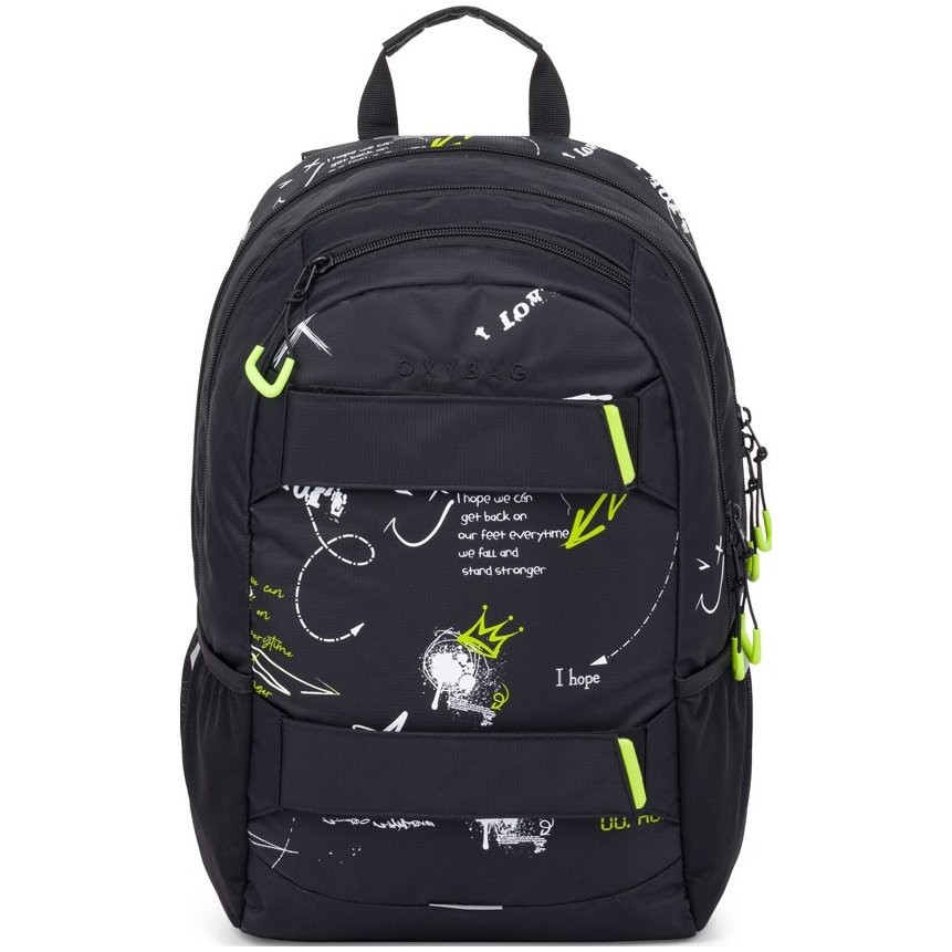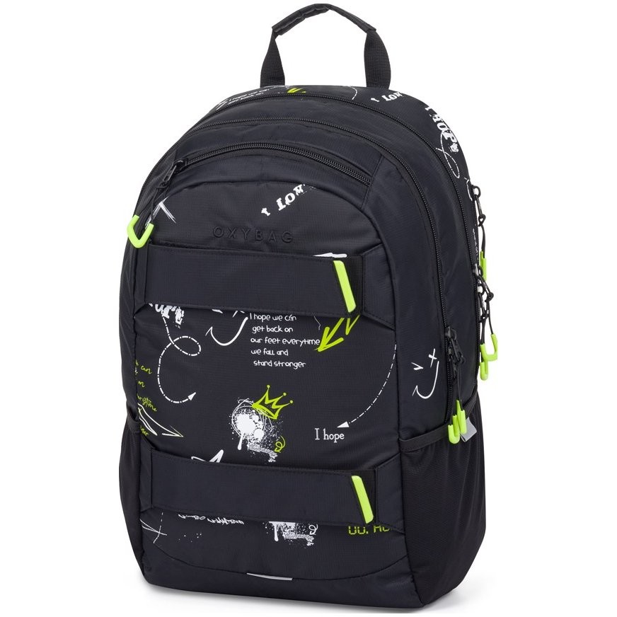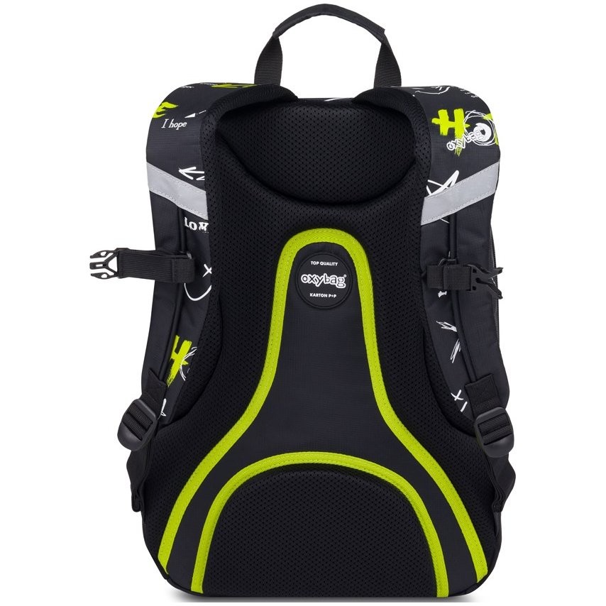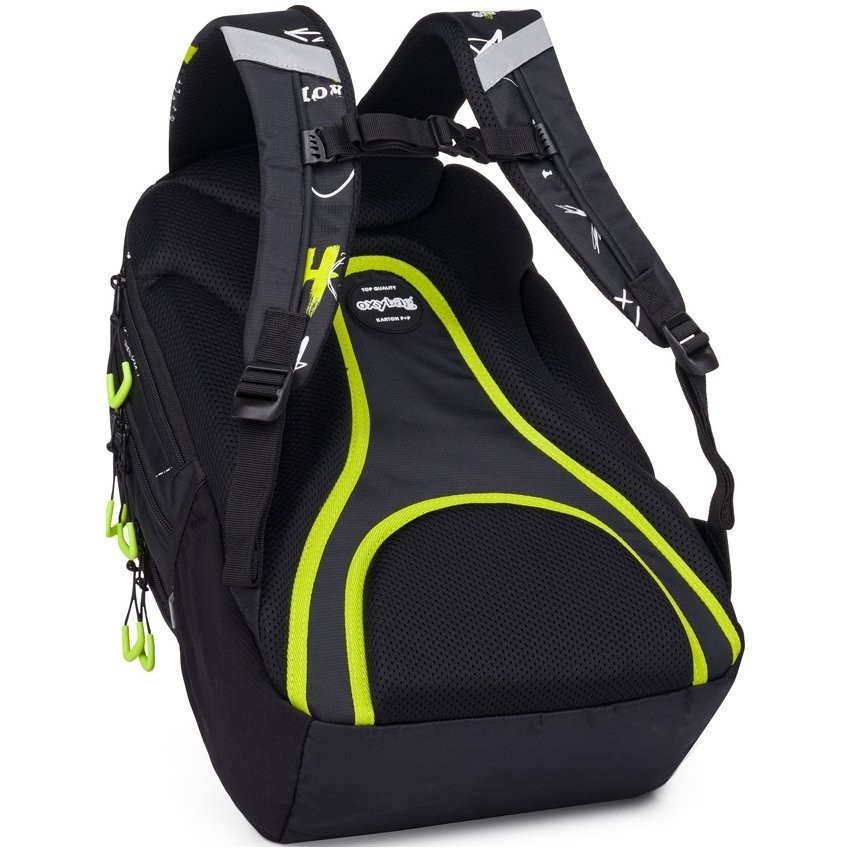 Az OXY SPORT diák hátizsák kiemelkedik ergonómikusan kialakított hátlapjával, állítható párnázott vállpántjaival és mellkasi pántjával, amelyek kényelmes viseletet biztosítanak. Az Iskolai hátizsák két fő rekeszből és egy kisebb elülső zsebből áll, erős cipzárral és praktikus hurkokkal. A hátizsák belsejében található egy megerősített laptop zseb, egy karabiner a kulcsoknak, egy kisebb zseb az apróságoknak, valamint egy rejtett zseb a hátoldalon. Van még egy oldalzseb a kulacsra, valamint számos fényvisszaverő elem, amelyek jobban láthatóvá teszik a hátizsákot. Az iskolai hátizsák ideális mind a második osztályosok, mind a diákok és a felnőttek számára. A hátlap hossza 46 cm,