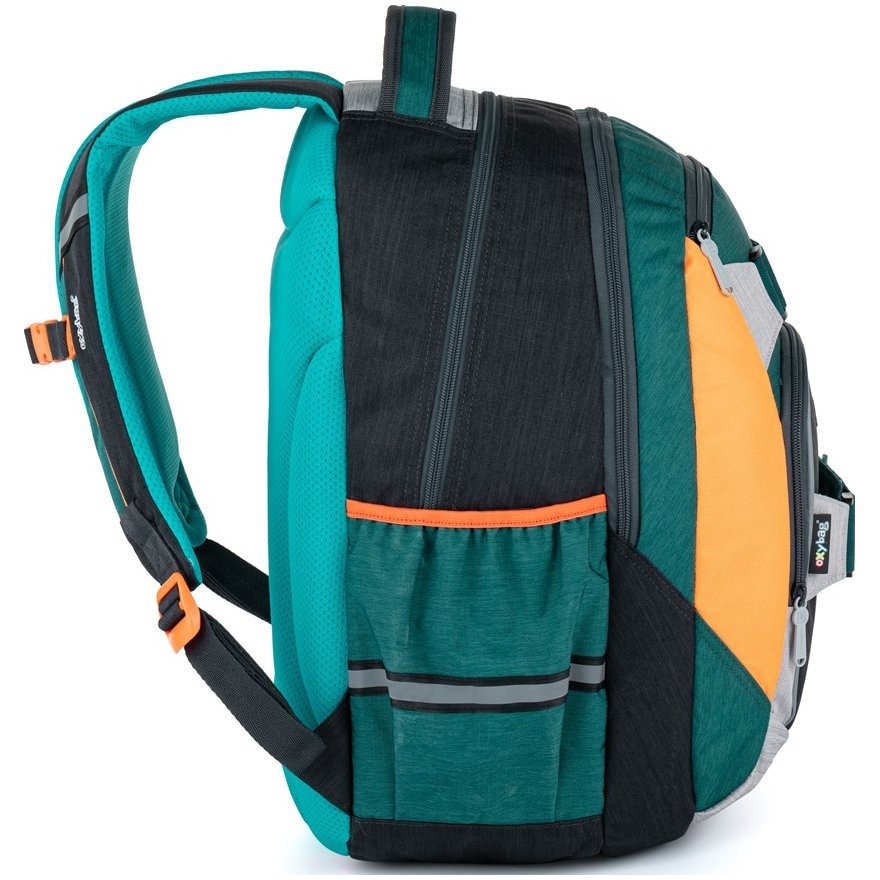 Friss, városi stílus? Igen! Az OXY STYLE sorozat hátizsákja józanságával, ízével és a felhasznált minőségi anyagokkal imponál. Tökéletesen illeszkedik, mivel anatómiailag kialakított, lélegző háttal, állítható párnázott vállpántokkal és állítható mellpánttal rendelkezik - mindez az iskolába és az iskolába való kényelmes utazáshoz. Szükséges zseb egy laptop zseb és belső zsebek, amelyeknek köszönhetően minden a helyén lesz a hátizsákban. Ennek a sorozatnak a hátizsákjai könnyűek, mégis jelentős helyet biztosítanak. Akár 28 liter olyan tárgy is elfér benne, amely nélkül tinédzsere nem nélkülözheti az iskolában. A hátizsák említett ergonómiája garantálja a kellemes napi viseletet, az állandó formát és a hallgatók nagy népszerűségét.