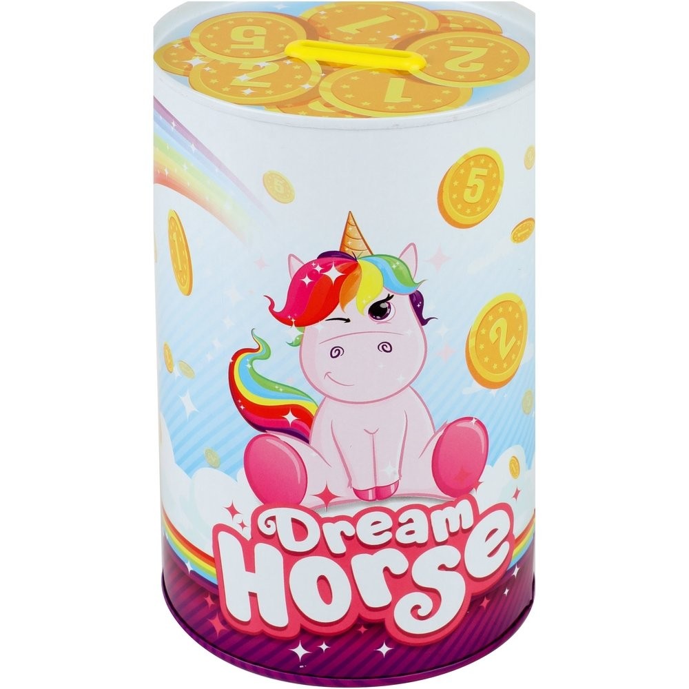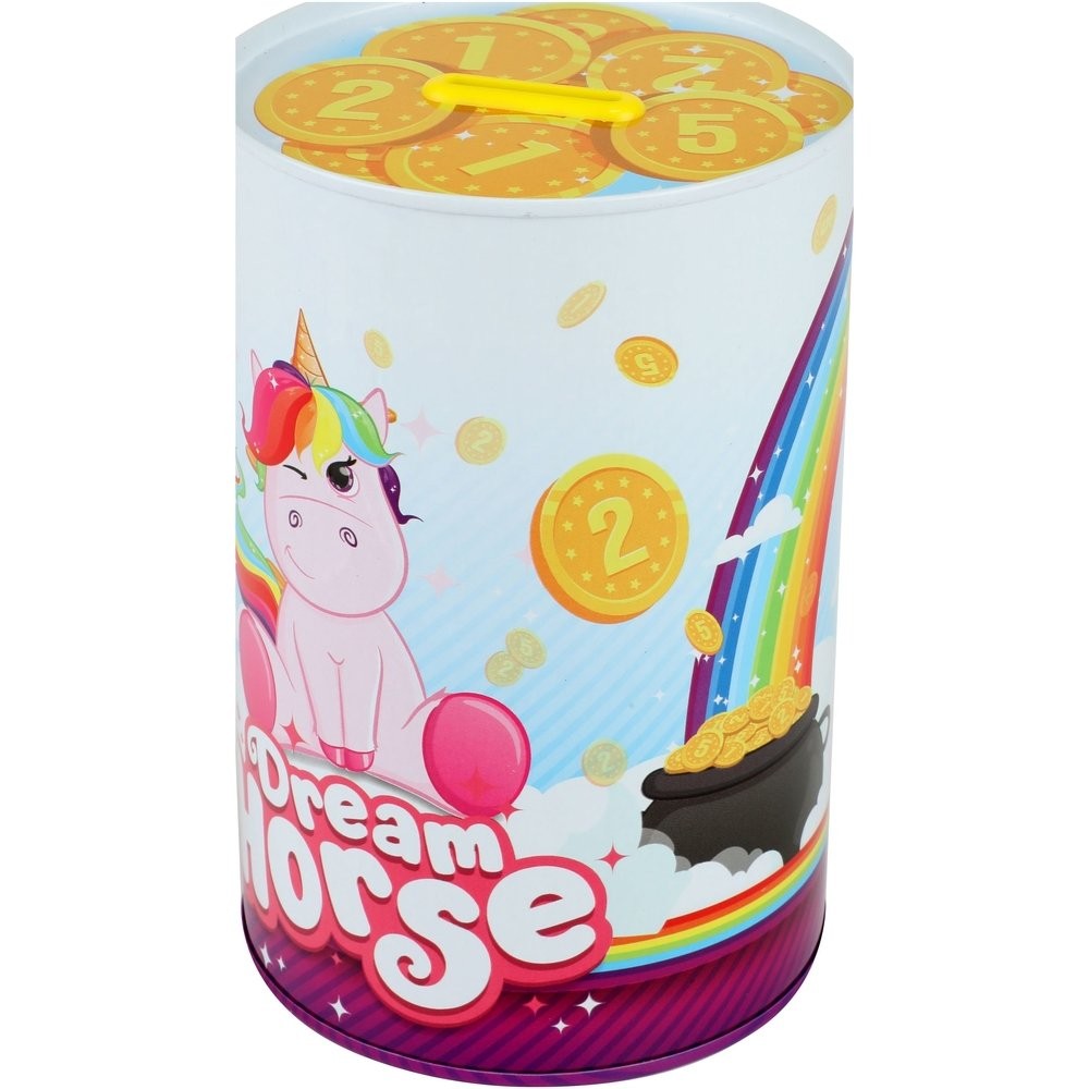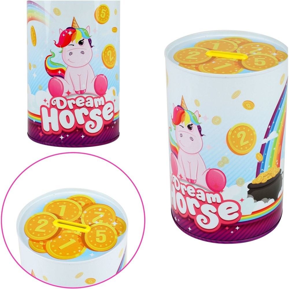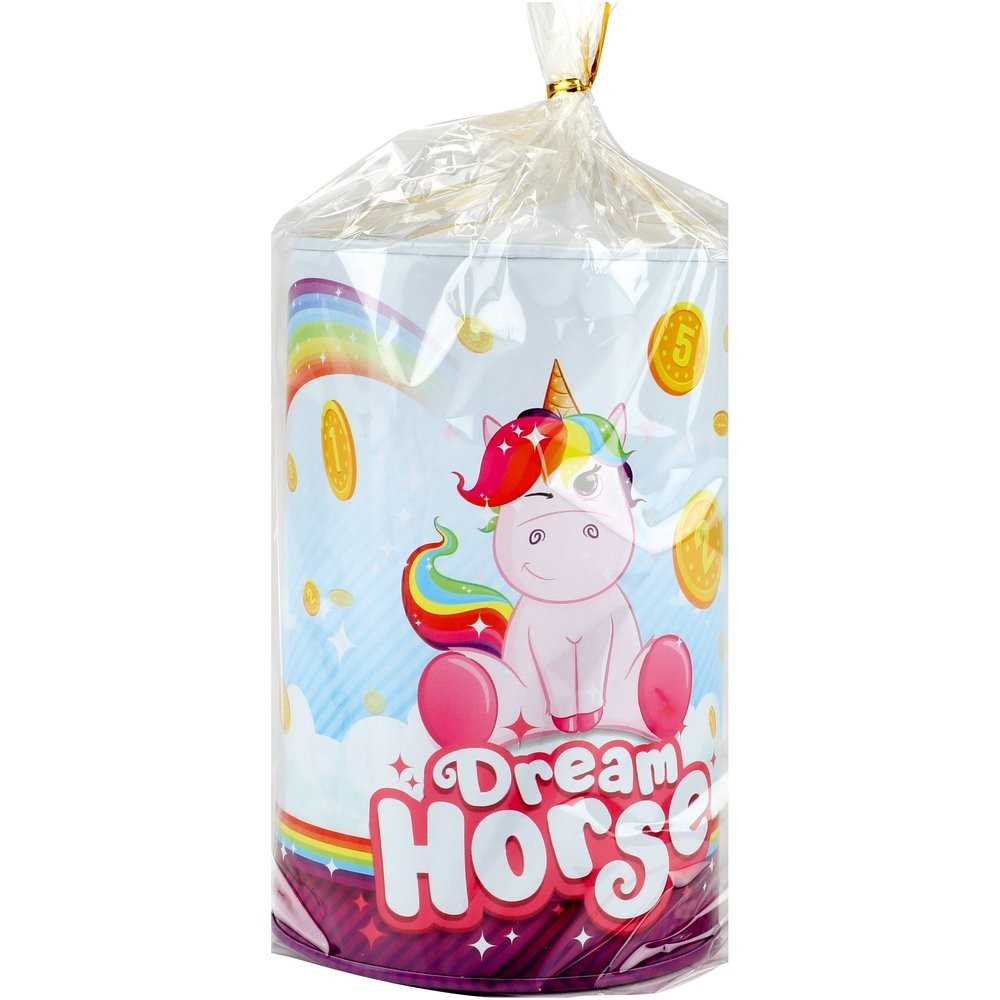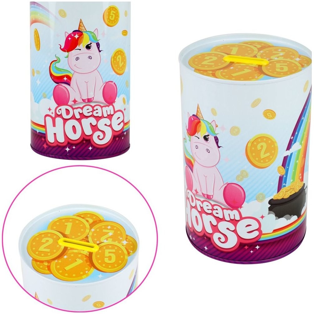 Egy nagy persely, egyszarvú motívummal, amely arra ösztönzi a gyerekeket, hogy pénzt takarítsanak meg, hogy később megvásárolhassák kedvenc játékukat. A persely tetején van egy érmenyílás. A csomag méretei: 10 x 15 x 10 cm. 3 évesnél idősebb gyermekek számára alkalmas.