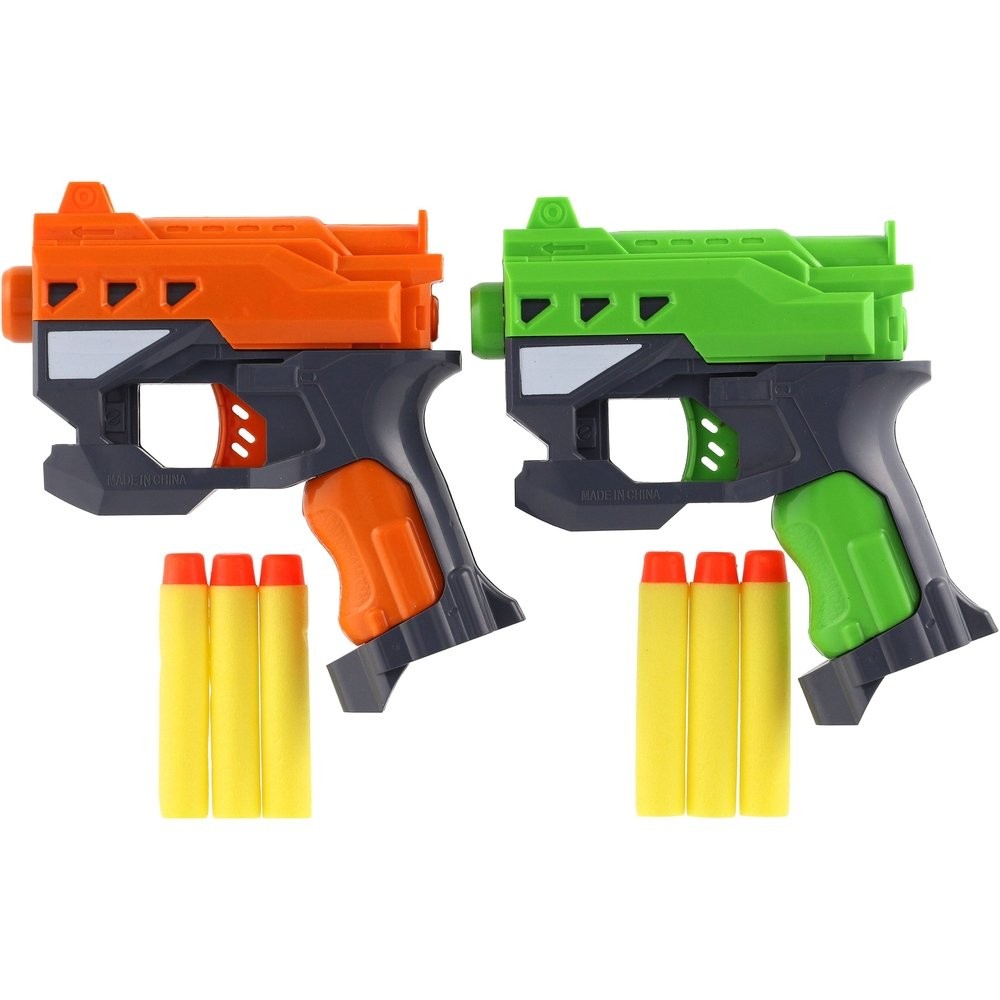 Játékos szórakozás nem csak fiúknak! A habgolyós pisztoly minden kis fegyverest lefoglal. Helyezze a patront a pisztoly kamrájába, és húzza meg a kakast. Most már nincs más dolgod, mint jól célozni és lelőni az ellenfelet! A csomagban két pisztoly található, amelyek ideálisak Önnek és barátjának vagy testvérének. Mindannyiótoknak három golyója lesz, és kezdődhet a játék! Fegyver mérete: 12 cm Csomag mérete: 22 x 29 x 5 cm Alkalmas gyermekek számára 6 éves kortól