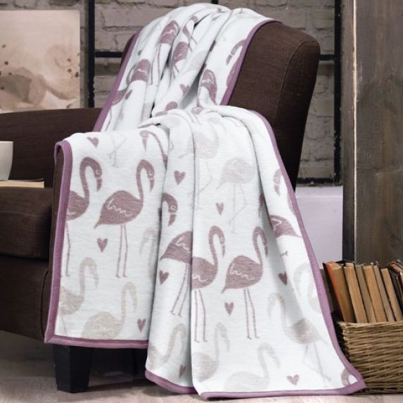 Sűrű szövésű, meleg és kellemes tapintású luxus pamut pléd. Az új szövési formula garantálja a könnyedséget és a nagy légáteresztést. A DARK FLAMINGO pléd otthona egyedi kiegészítője és a hideg esték nélkülözhetetlen társa lesz. A vonzó, mégis nagyon lágy motívum minta flamingókkal, barna-lila és rózsaszín színekkel természetes fehér alapon elbűvöli az új trendek kedvelőit. Másik oldala fordított színekkel. A plédet elegáns és dekoratív ágytakaróként is használhatja. A pléd teljes kerületén szegély található (más kivitelezés, mint a fényképen). Anyagösszetétel: 60% pamut, 40% akril Méret: 160/220 cm Súly: 500 g / m2 Karbantartás: 30 ° C-on mosható, kímélő mosószerrel.