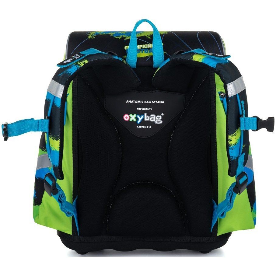 A fő rekesz fém zárral van ellátvazárható. Tágas belső tér könyvtartó rekesszel van ellátva, ügyesen kigondolt mozgós rekeszben könnyebben megy majd a bepakolás. A táska felső részén fóliával az óra rendre és egy címkével van ellátva. A táskának az anatómiailag formázott, párnázott légáteresztő hálós anyagból, hátfala és állítható vállpántok vannak. Mellkaspántokkal és kiegészíto pántokkal is ellátva van. Az elegendő támaszt és az optimális súlyelosztást biztosítja. Az aktatáska elülső részében egy tágas cipzáras thermo zseb van az uzsonna doboz tárolásához. Az két oldalos cipzáros zsebek a kulacs elhelyezésére vannak tervezve és a további iskolai kelléket is beférnek. Erős, stabil tartólábak a táska alján, melyek megakadályozzák a táska aljánok sérülését, nedvesség és szennyeződés ellen. A nagyobb láthatóságot és biztonságot biztosítják a fényvisszaverő anyagok a hátizsák minden oldalán. Textil fül a táska szállításhoz van tervezve, vagy padra akasztható.
