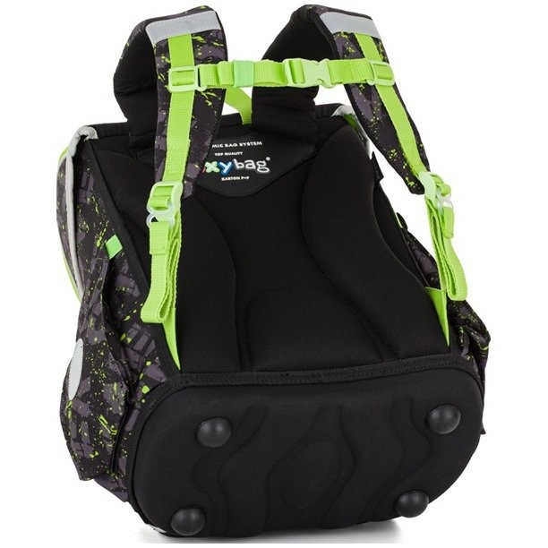 A prémium iskolatáska anatómiailag formált és biztosítja a megfelelő illeszkedést a háton. A megerősített hátrész és a belső megerősítés megőrzi a hátizsák formáját. A bélés kellemes, légáteresztő anyagból készült, a széles, puha pántok pedig tökéletesen illeszkednek és egyenletesen terhelik a gyermek vállát. A táska egy tágas rekeszből áll, amelyben kényelmesen elférnek az 1. és 2. osztályos gyermekek számára szükséges összes iskolai felszerelés. Ezenkívül további kampókkal is fel van szerelve a pántok rögzítéséhez. A táska alja tömör anyagból készült, amely megvédi a tartalmát a felborulástól és a kiömléstől. Fényvisszaverő reflektorral ellátott biztonsági fémcsattal rögzíthető. Az elülső zseb uzsonnának való, és számos fényvisszaverő elem teszi a táskát jobban láthatóvá. Hátlap hossza: 33 cm. Űrtartalom: 27 l. Teherbírás: 8 kg.