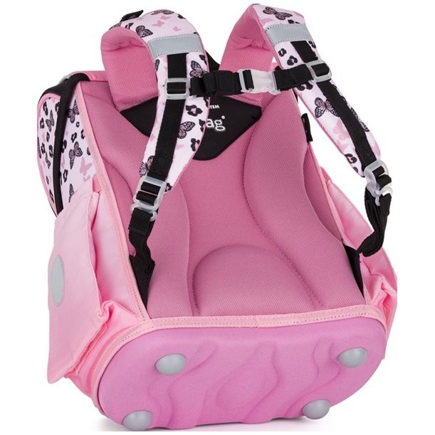 A prémium iskolatáska anatómiailag formált és biztosítja a megfelelő illeszkedést a háton. A megerősített hátrész és a belső megerősítés megőrzi a hátizsák formáját. A bélés kellemes, légáteresztő anyagból készült, a széles, puha pántok pedig tökéletesen illeszkednek és egyenletesen terhelik a gyermek vállát. A táska egy tágas rekeszből áll, amelyben kényelmesen elférnek az 1. és 2. osztályos gyermekek számára szükséges összes iskolai felszerelés. Ezenkívül további kampókkal is fel van szerelve a pántok rögzítéséhez. A táska alja tömör anyagból készült, amely megvédi a tartalmát a felborulástól és a kiömléstől. Fényvisszaverő reflektorral ellátott biztonsági fémcsattal rögzíthető. Az elülső zseb uzsonnának való, és számos fényvisszaverő elem teszi a táskát jobban láthatóvá. Hátlap hossza: 33 cm. Űrtartalom: 27 l. Teherbírás: 8 kg.