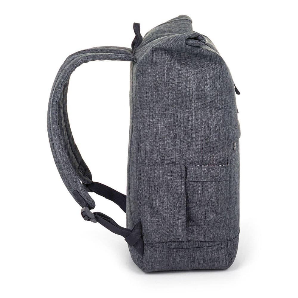 A hátizsák térfogata a rolltop, mágneses zárásnak köszönhetően részben variálható. A tartalmat egy fém csat is biztonságosan rögzíti. A nagy fő rekeszben háromrészes zseb található apróságok számára, egy kis cipzáras zseb, valamint a hátrészen egy párnázott laptoprekesz. Az oldalsó zsebek a hátizsák anyagából készültek, és akár egy 1,5 literes kulacsot vagy esernyőt is megtartanak.