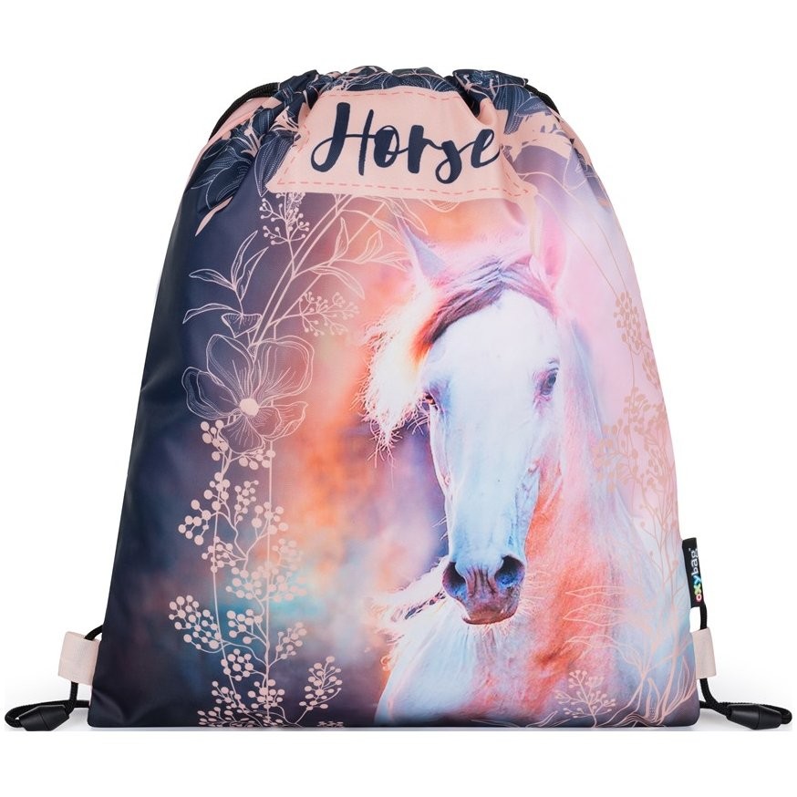 Lovas motívummal ellátott cipőzsák. A zsinórok összehúzásával záródik, háton is lehet hordani, vagy rögzíthető az iskolatáskához. Anyaga 100% poliészter. Méretek: 37 x 30 cm