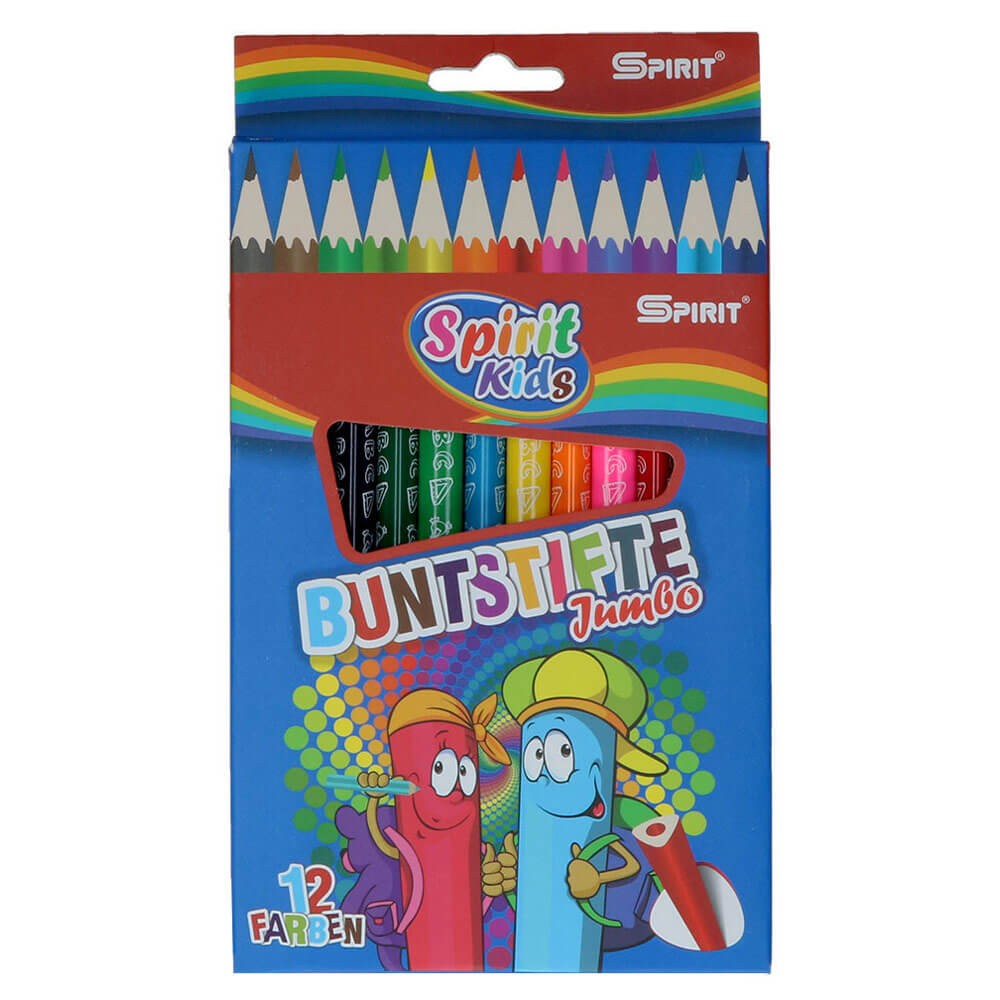 Spirit Jumbo erős háromszög alakú színes ceruza óvodásoknak és általános iskolásoknak, 12 élénk színű, háromszög alakú megkönnyíti a kisgyermekek számára, hogy rajzolás közben a zsírkrétát tartsák, könnyen vághatók, törésállóak, megfelelnek az EU FSC szabványainak.