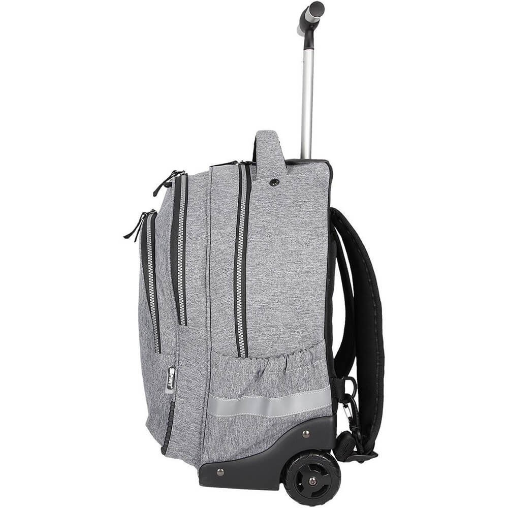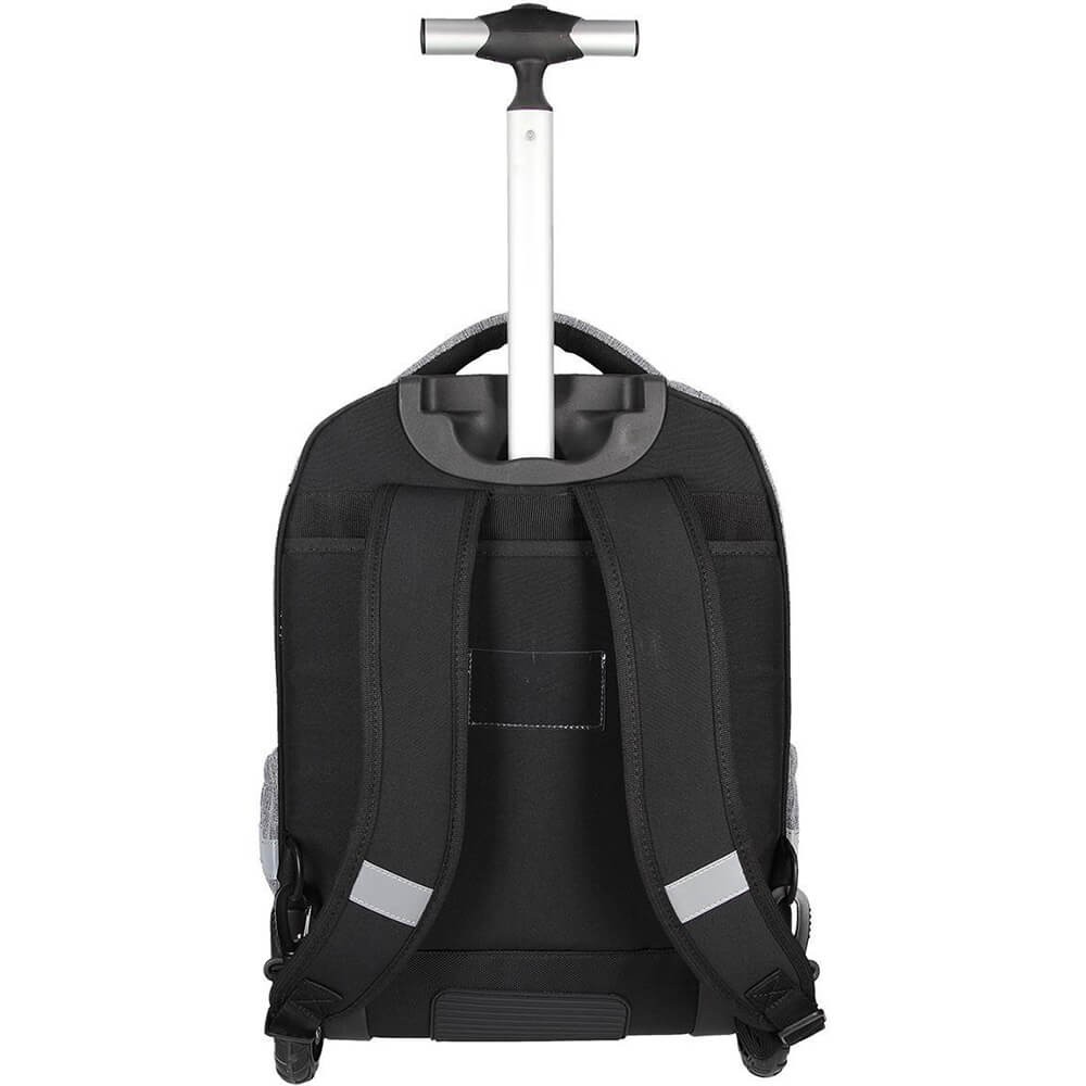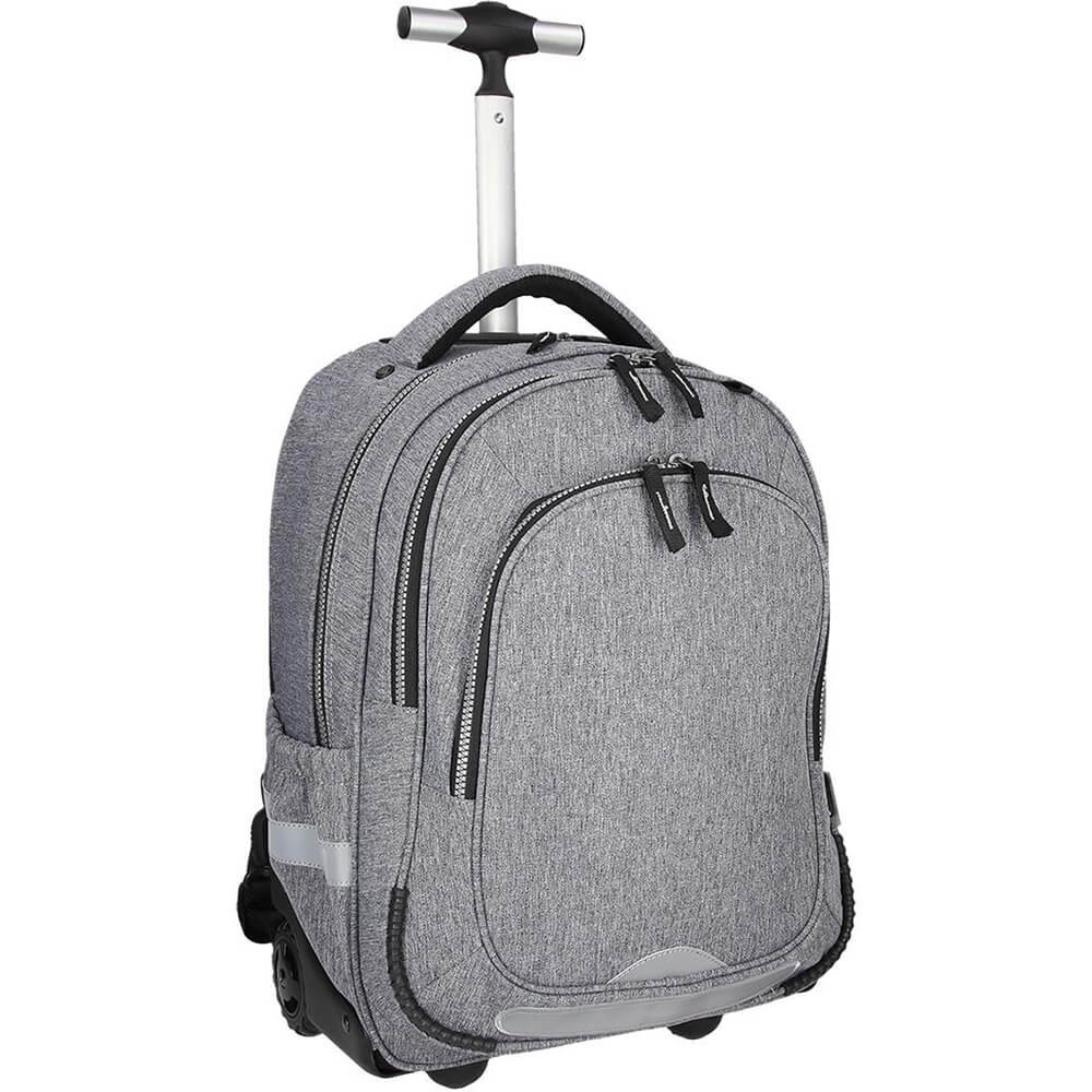 Az elegáns, szürke színű, kétrekeszes SPIRIT gurulós iskolatáska a harmadik osztályos és idősebb gyermekek számára alkalmas. A Trolley modellek kényelmesen húzhatóak a könnyen forgó kerekek és a teleszkópos fogantyú segítségével. Szükség esetén klasszikus hátizsákként is használhatóak a beépített, állítható hosszúságú vállpántoknak köszönhetően.