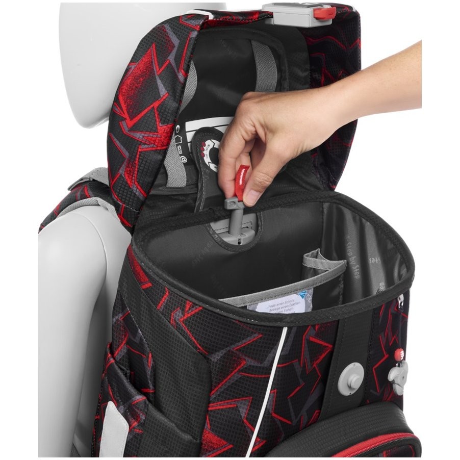 Iskolatáska első osztályosoknak mindössze 990 g súlyú, és 100 és 150 cm közötti magasságú gyermekek számára alkalmas. Az aktatáska cserélhető MAGIC MAGS képekkel és EASY GROW SYSTEM rendszerrel rendelkezik, ami azt jelenti, hogy a táska a gyermekkel együtt növekszik (a táska 1. és 4. osztály közötti gyermekek számára alkalmas). Az ultrakönnyű üvegszálas hátpanel, az ergonómiailag formázott hátrész légáteresztő párnázással, valamint az állítható és ergonómikus vállpántok magától értetődőek a Step by Step iskolatáskában. Az iskolatáska ezenkívül húzópántokkal is rendelkezik a táska hátuljához való szoros illeszkedés érdekében, levehető, magasságban állítható mellkaspánttal, fogantyúkkal a vállpántok végein és párnázott, levehető csípőövvel, kis oldalsó cipzáras zsebbel. Az elülső zseb hőszigetelő réteggel és vízelvezető lyukakkal ideális a harapnivalók tárolására. A nyitott oldalsó zsebek kifelé nyúlnak vízelvezető lyukakkal és hordozó/akasztó hurokkal. Az iskolatáska FIDLOCK mágneses zárral záródik. A belső zsebbel ellátott fő zseb nehezebb tárgyak (könyvek, jegyzetfüzetek) tárolására alkalmas, a fedélben lévő rugalmas anyagnak köszönhetően több hely van a táskában a tolltartó gazdaságos tárolásának köszönhetően. Vízálló, tömör alj és rejtett AirTag rekesz. Fényvisszaverő elemek a nagyobb biztonság érdekében a közúti közlekedésben, sötétben és éjszaka.