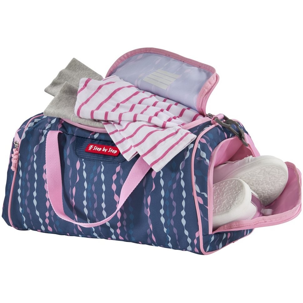 A Step by Step Mermaid Bella sporttáska minden sportfelszerelésnek helyet biztosít, a tornacipőtől a pólóig. Levehető, állítható hosszúságú vállpánt, párnázott párnával a maximális hordozási kényelem érdekében. A sporttáska oldalzsebbel rendelkezik az értékek, például mobiltelefon, pénztárca vagy kulcsok biztonságos tárolására, alagútzseb a nedves vagy piszkos ruhanemű vagy cipők tárolására, kétirányú cipzár és fedett cipzárak.