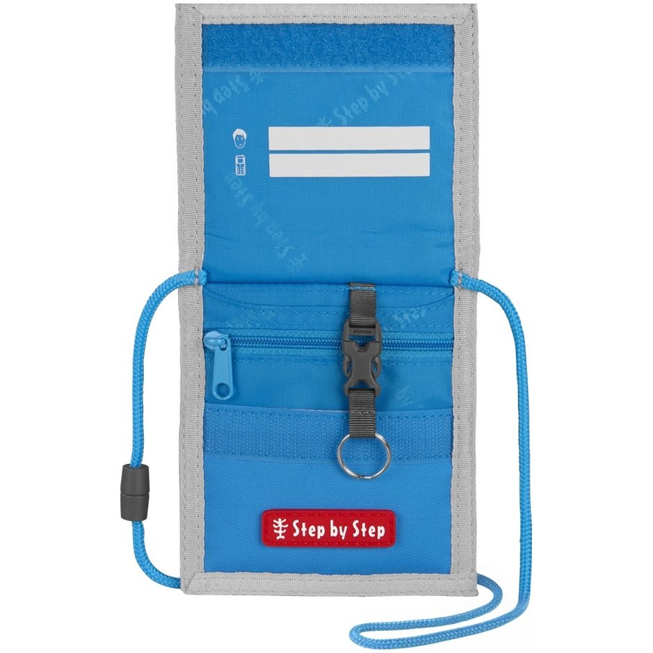 Helyes és praktikus lány nyakba akasztható pénztárca, amely nemcsak érmék és bankjegyek, hanem okmányok és kulcsok tárolására is alkalmas. A nyakpánt biztonsági zárral rendelkezik (biztonsági zár), így ha a gyermek beleakad, nem sérül meg, a zár automatikusan kinyílik. A felnyitható fedél tépőzáras, belül cipzáras aprópénztartó rekesz, nagy bankjegytartó rekesz és belül kulcstartó karabinerrel. A hátoldalon átlátszó rekesz az igazolvány számára a gyors ellenőrzéshez (pl. ebédjegy, tömegközlekedési kártya stb.).