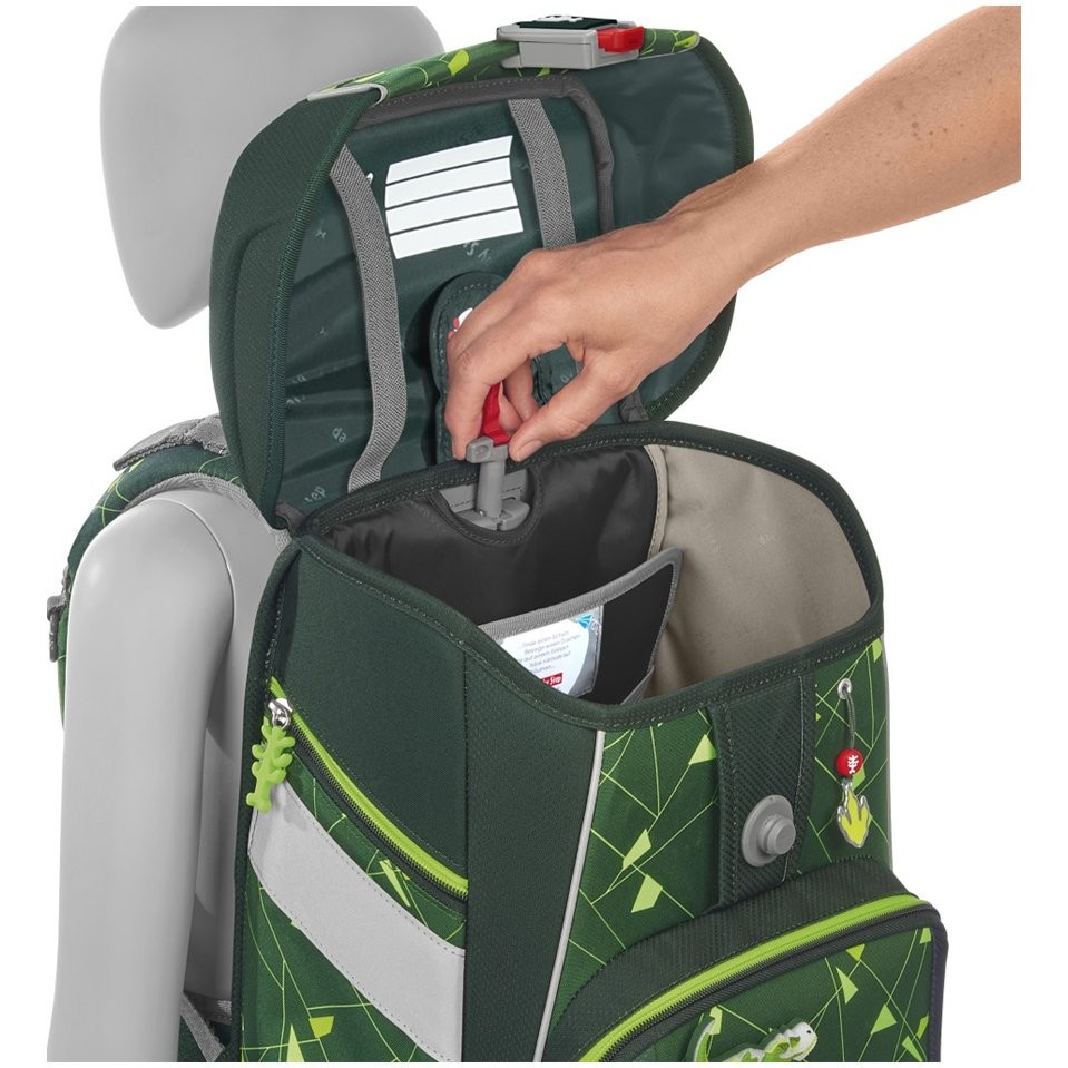 A tágas iskolatáska elsősöknek súlya 1250 g, és 100–150 cm magas gyermekek számára alkalmas. Az elsősöknek készült táska cserélhető MAGIC MAGS képekkel, EASY GROW SYSTEM – a gyermekkel együtt növekszik (a táska 1–4. osztályos gyermekek számára alkalmas), ultrakönnyű üvegszálas háttámla, ergonomikusan kialakított hátlap légáteresztő pántokkal, húzózsinórokkal az aktatáska hátlaphoz való szoros illeszkedéséhez, levehető, magasságban állítható mellkas pánttal és a vállpántok végének rögzítéséhez. Az iskolatáska továbbá párnázott, levehető derékpánttal, hőszigetelő réteggel ellátott elülső zsebbel és vízelvezető nyílásokkal rendelkezik. Ezenkívül zárható, kifelé növekvő oldalsó zsebekkel rendelkezik, vízelvezető nyílásokkal, párnázott fogantyúval és akasztóhurkával, valamint FIDLOCK mágneses zárral. Fő zseb belső zsebbel a nehezebb tárgyak (könyvek, füzetek) tárolásához, gumiszalaggal a fedélben a tolltartó helytakarékos tárolásához.