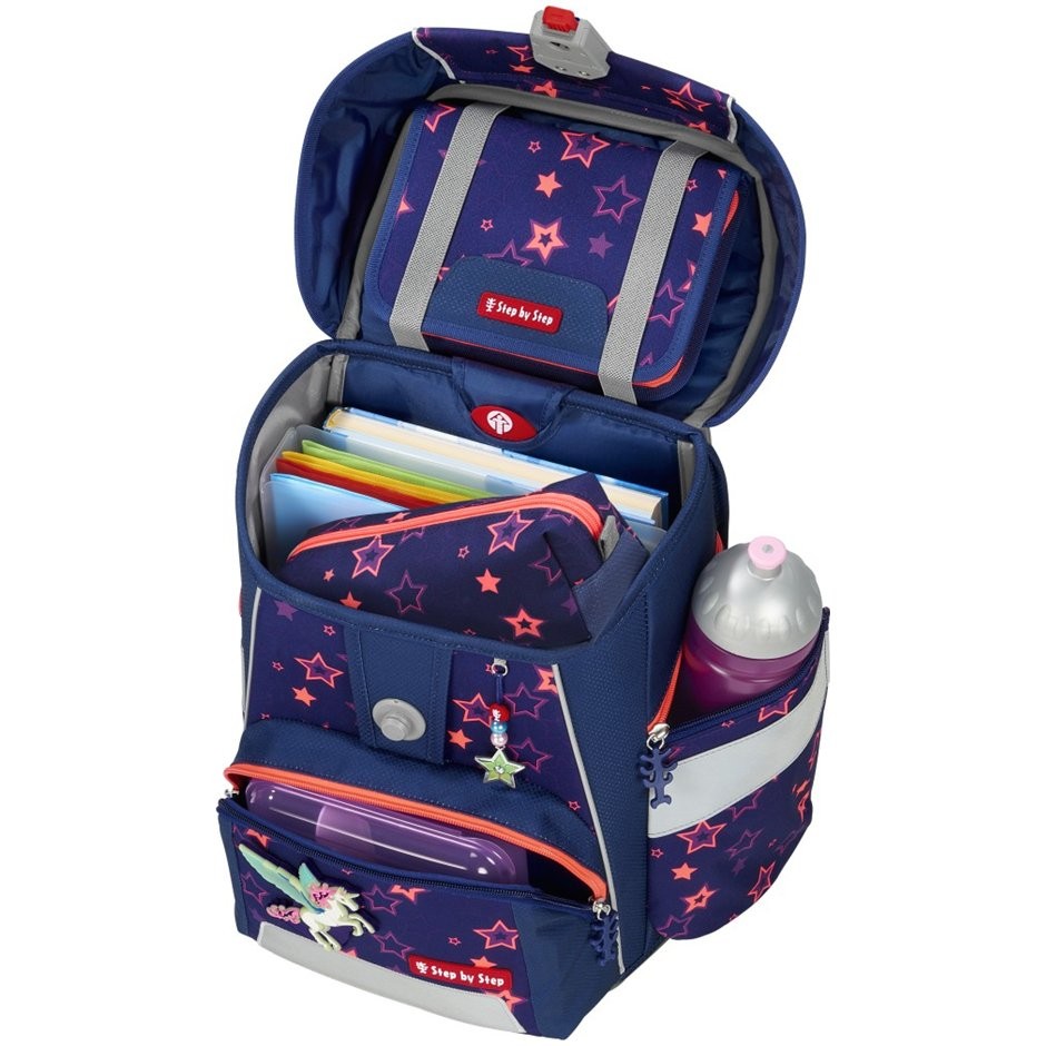 SHINE különleges kiadás A feltűnő neon színek és fluoreszkáló elemek kombinációjának köszönhetően gyermeke még jobban látható lesz a szabadban! Tágas Step by Step táska, amelybe minden szükséges dolog befér, a tollaktól a sporteszközökig.