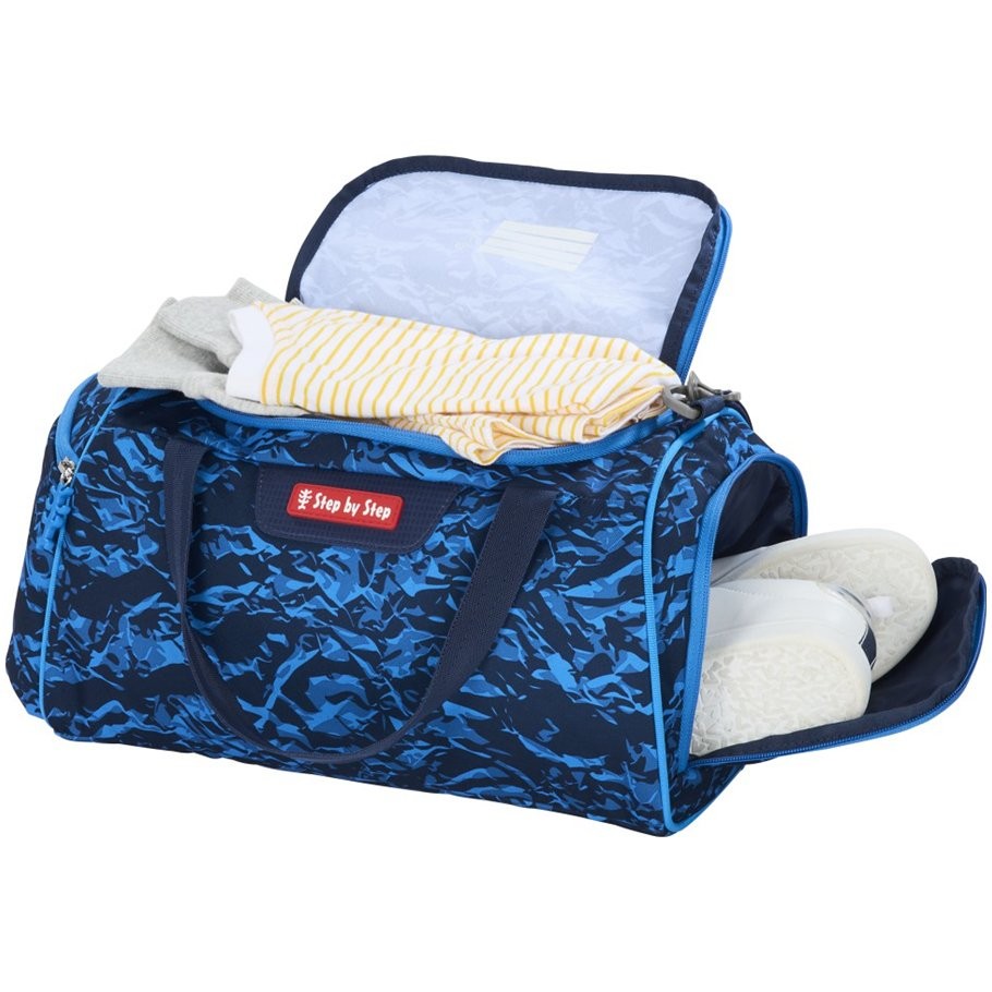 A Step by Step Manta Rio fiú utazótáska, amely sportoláshoz is ideális, elegendő helyet kínál minden sportfelszerelés számára a sportcipőtől a pólókig. Levehető, hosszában állítható vállpánttal rendelkezik, amely párnázott alátéttel van ellátva a maximális viselési kényelem érdekében. Oldalzseb a mobiltelefon, pénztárca vagy kulcsok biztonságos tárolására, alagútzseb nedves vagy szennyezett ruhák, illetve cipők elhelyezésére, kétirányú cipzár, fedett cipzárak és impregnált anyag a fokozott esőállóságért. A sporttáska továbbá párnázott aljjal és tépőzáras rögzítésű hordfogantyúval is rendelkezik.