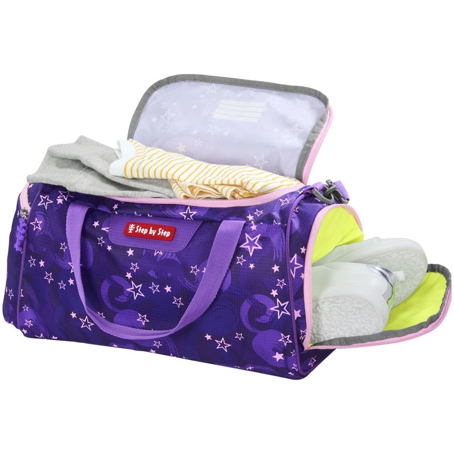 A Step by Step Pegasus Liv lány sporttáska elegendő helyet kínál minden sportfelszerelés számára a sportcipőtől a pólókig. Levehető, hosszában állítható vállpánttal rendelkezik, amely párnázott alátéttel van ellátva a maximális viselési kényelem érdekében. Oldalzseb a mobiltelefon, pénztárca vagy kulcsok biztonságos tárolására, alagútzseb nedves vagy szennyezett ruhák, illetve cipők elhelyezésére, kétirányú cipzár, fedett cipzárak és impregnált anyag a fokozott esőállóságért. A sporttáska továbbá párnázott aljjal és tépőzáras rögzítésű hordfogantyúval is rendelkezik.