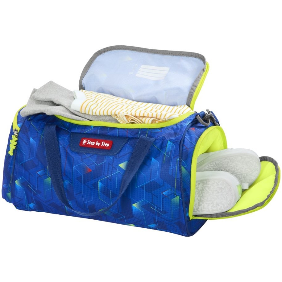 A Step by Step Police Truck Charly sporttáska elegendő helyet kínál minden sportfelszerelés számára a sportcipőtől a pólókig. Levehető, hosszában állítható vállpánttal rendelkezik, amely párnázott alátéttel van ellátva a maximális viselési kényelem érdekében. Oldalzseb a mobiltelefon, pénztárca vagy kulcsok biztonságos tárolására, alagútzseb nedves vagy szennyezett ruhák, illetve cipők elhelyezésére, kétirányú cipzár, fedett cipzárak és impregnált anyag a fokozott esőállóságért. A utazótáska továbbá párnázott aljjal és tépőzáras rögzítésű hordfogantyúval is rendelkezik.