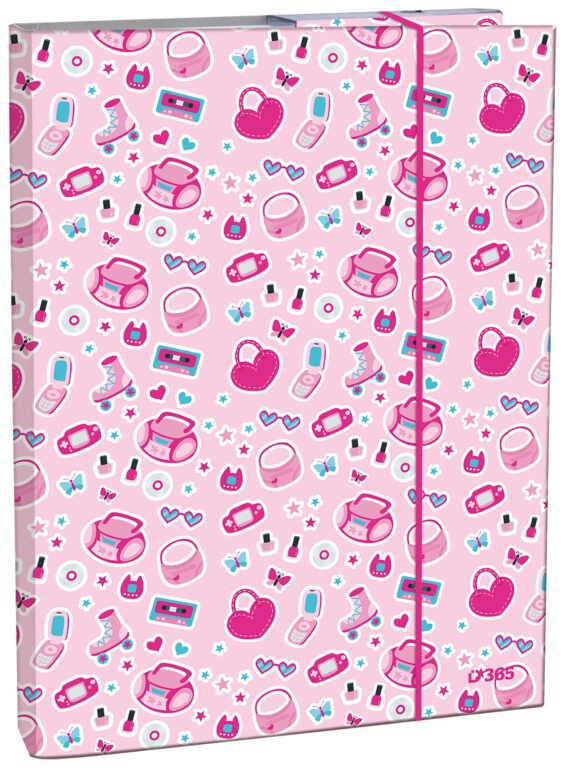 Stil Pinky lány füzettartó minden iskolás számára alkalmas A4-es formátumú könyvek és egyéb iskolai felszerelések tárolására. Az iskolai táblák lamináltak, fényesek, gumiszalaggal zárható a doboz. A laminált anyag megvédi a notebookokat és a dokumentumokat a víztől, a portól és a szennyeződéstől, meghosszabbítva azok élettartamát.