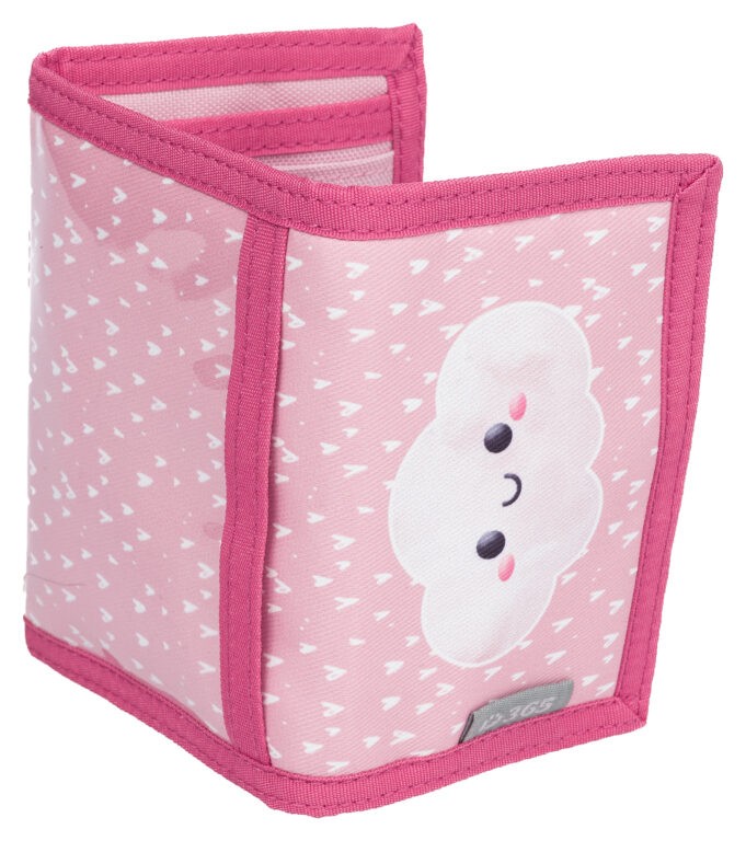 Ez a praktikus, nyakba akasztható, Stil Cloud gyerekpénztárca ideális megoldás kártyák és apróságok tárolására. Kívülről egy átlátszó zseb található a személyi igazolványoknak. Belül egy praktikus szervezőt talál öt zsebbel bankjegyeknek és egyéb apróságoknak, egy cipzáras zsebbel az aprópénzeknek és egy fém kulcstartóval. A Gyermek pénztárca könnyen zárható tépőzárral, és kényelmesen viselhető a nyak körül a masszív szövetzsinórnak köszönhetően. Méret: 12,8 x 9,5 cm