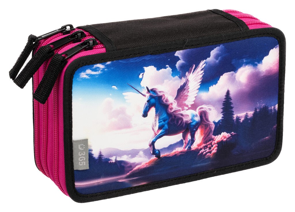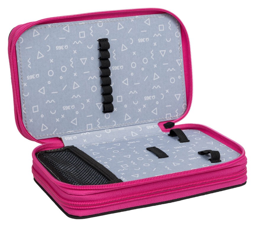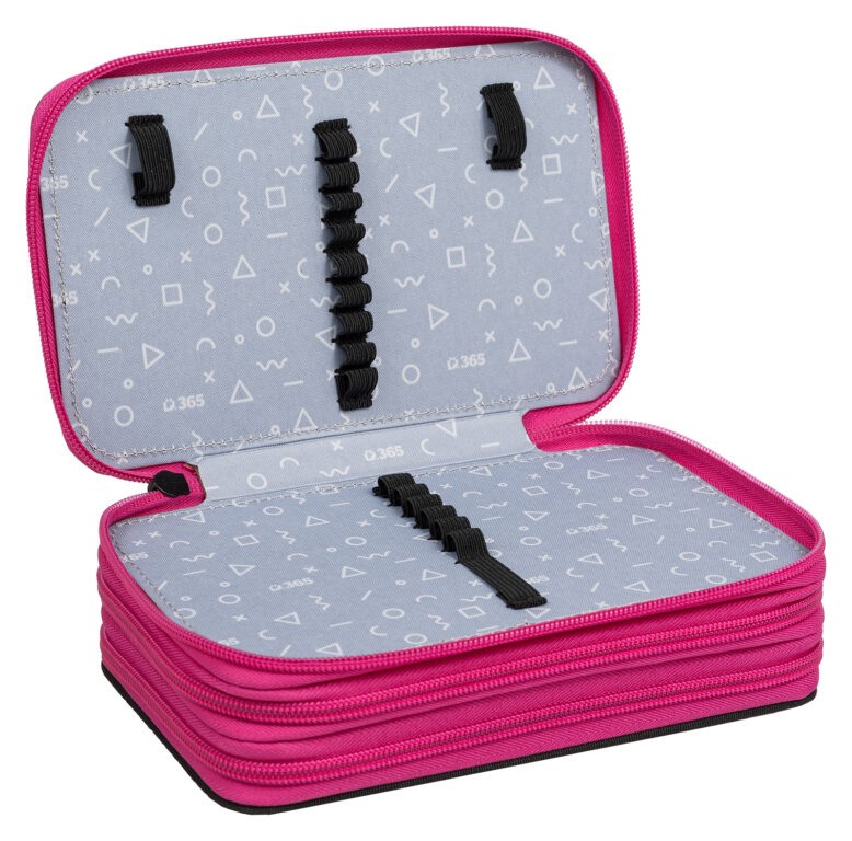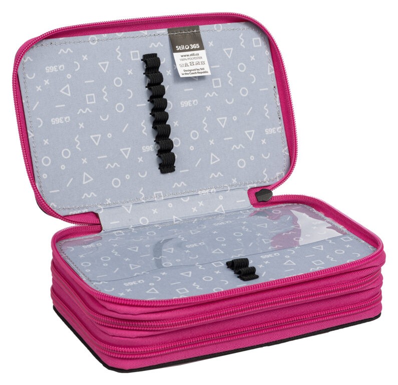 A Stil Dreaming lány tolltartóban a legtöbb író- és iskolai kelléket elfér. Az első szinten 8 gumiszalag található zsírkrétáknak, 3 szélesebb gumiszalag hegyezőnek és radírnak, valamint egy új, rugalmas szegéllyel ellátott hálós zseb apró tárgyak tárolására. A második emeleten egy átlátszó zseb található az órarendnek, valamint 10 strapabíró gumiszalag különböző méretű íróeszközöknek. A tolltartó harmadik része további 15 gumiszalagot kínál ceruzáknak és 2 további szélesebb gumiszalagot a különféle igényekhez. A háromszintes tolltartó tökéletesen színben harmonizáló kialakítású, amely remekül illik egy iskolatáskához vagy hátizsákhoz. A tolltartó üres.