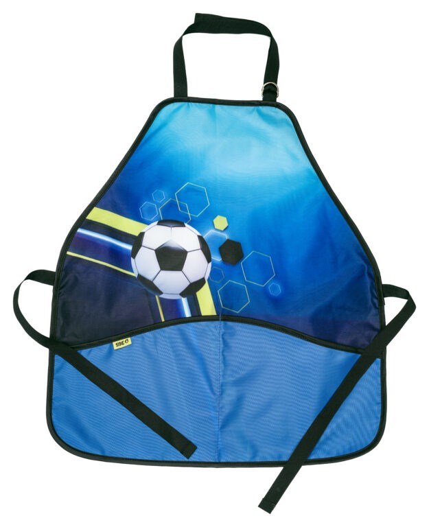A Stil Football kötény rajz órára állítható pánttal fejen keresztül vehető fel, és fűzőkkel köthető a testük köré. Mosható poliészter anyagból készült, amely könnyen karbantartható. Az elején 2 zseb található a művészeti kellékeknek. A kötény fő része iskolai mintákkal díszített képekkel van ellátva, amelyek illenek az iskolai kollekcióhoz.